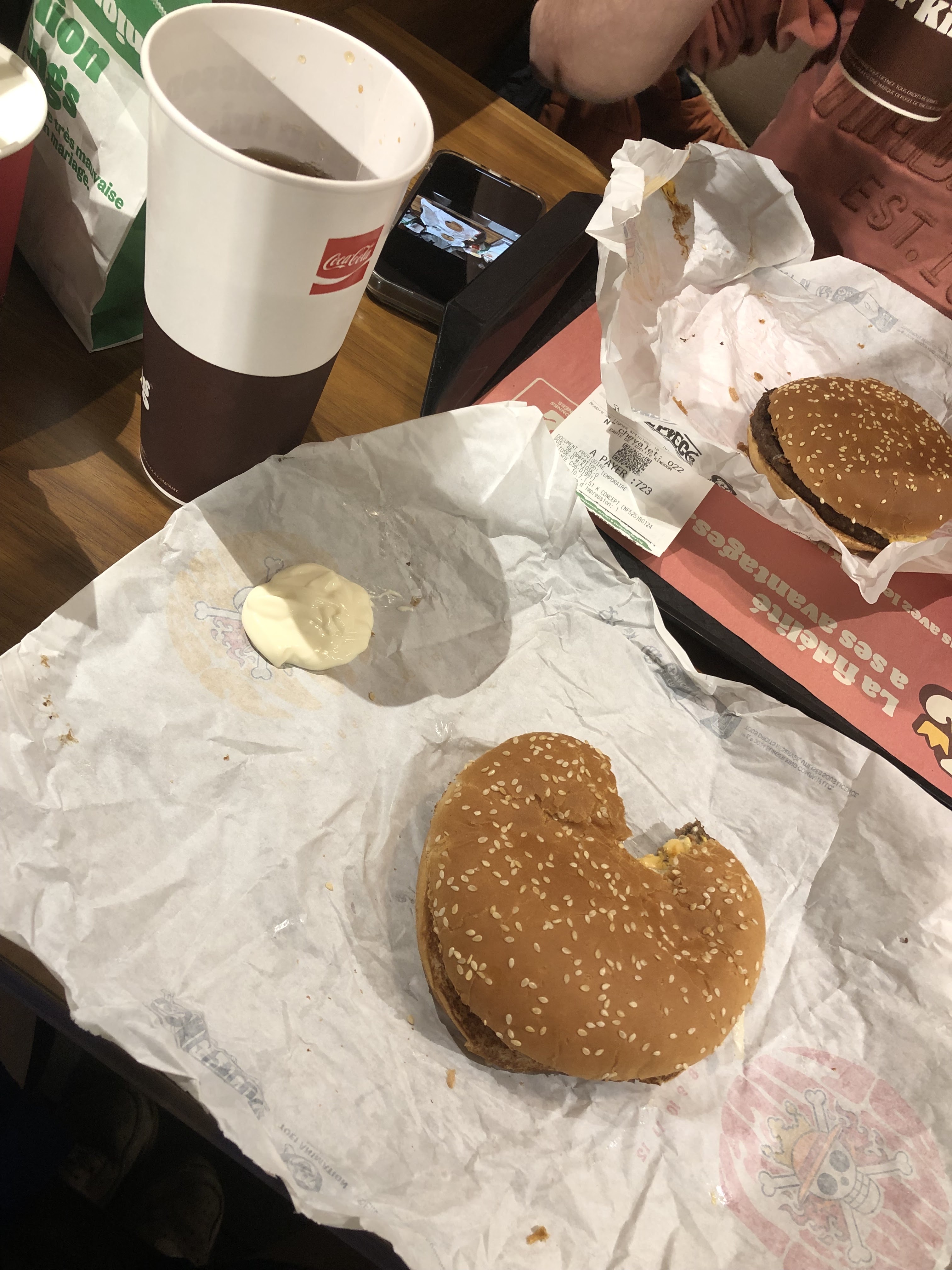 Hamburger froid Frites froides Table sale.. . Il était près de 14h , le coup de feu était passé !