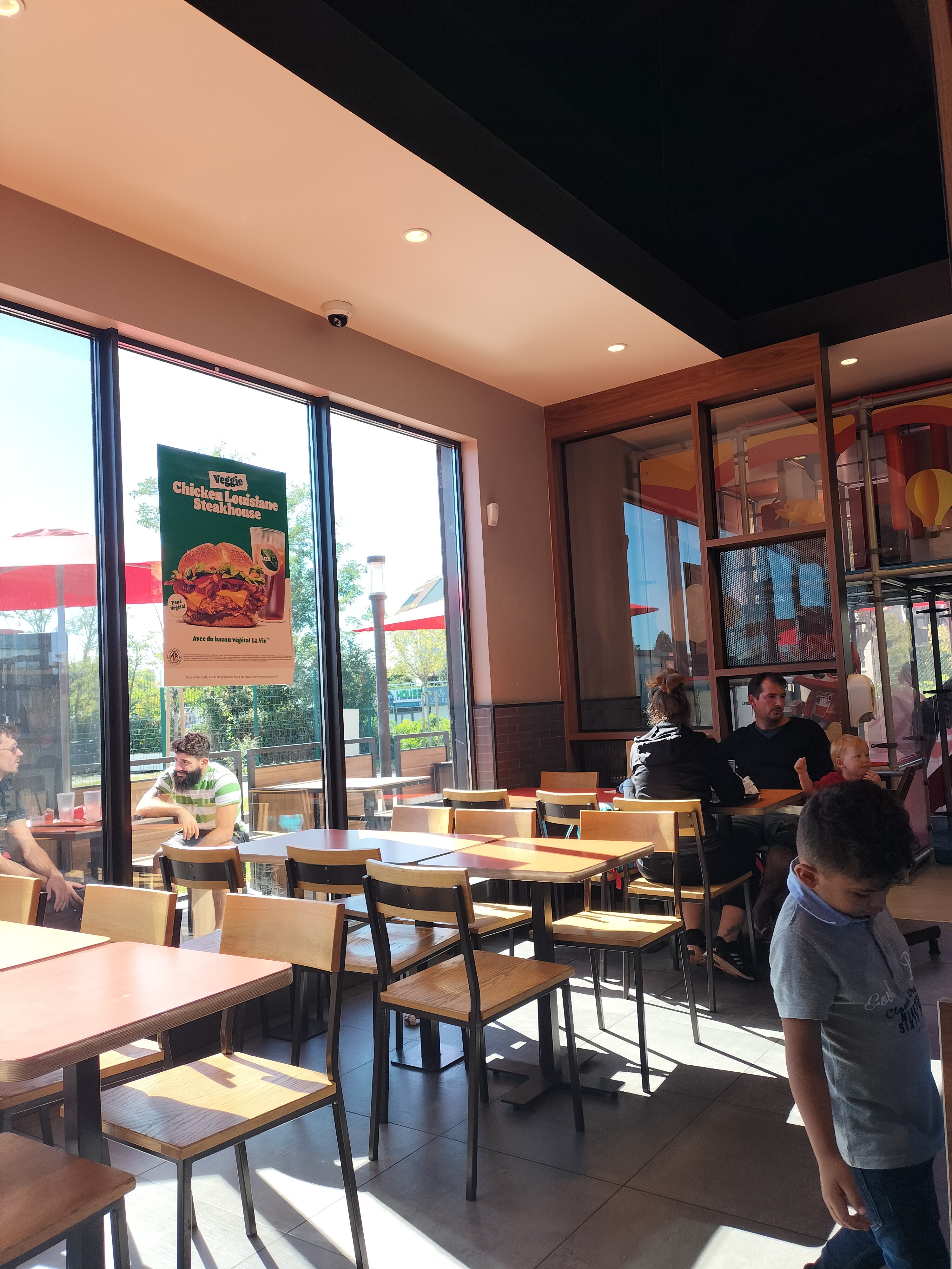 Lieu et personnel agréable.. Chez Burger King tout sort chaud c'est très agréable.. Je modifie mon avis en rajoutant que Burger King ou toute autre structure comme la vôtre devrait employé des animateurs pour les jeux enfants afin de surveiller le bon déroulement des jeux et mettre en place des activités. Cela, éviterait beaucoup de dégâts envers nos enfants qui ne sont pas sécurisé par les autres enfants. Ma petite a été poussé violemment en arrière sur le toboggan, elle a eu une grosse bosse sur le derrière de la tête... Surveillance 24h merci BK .