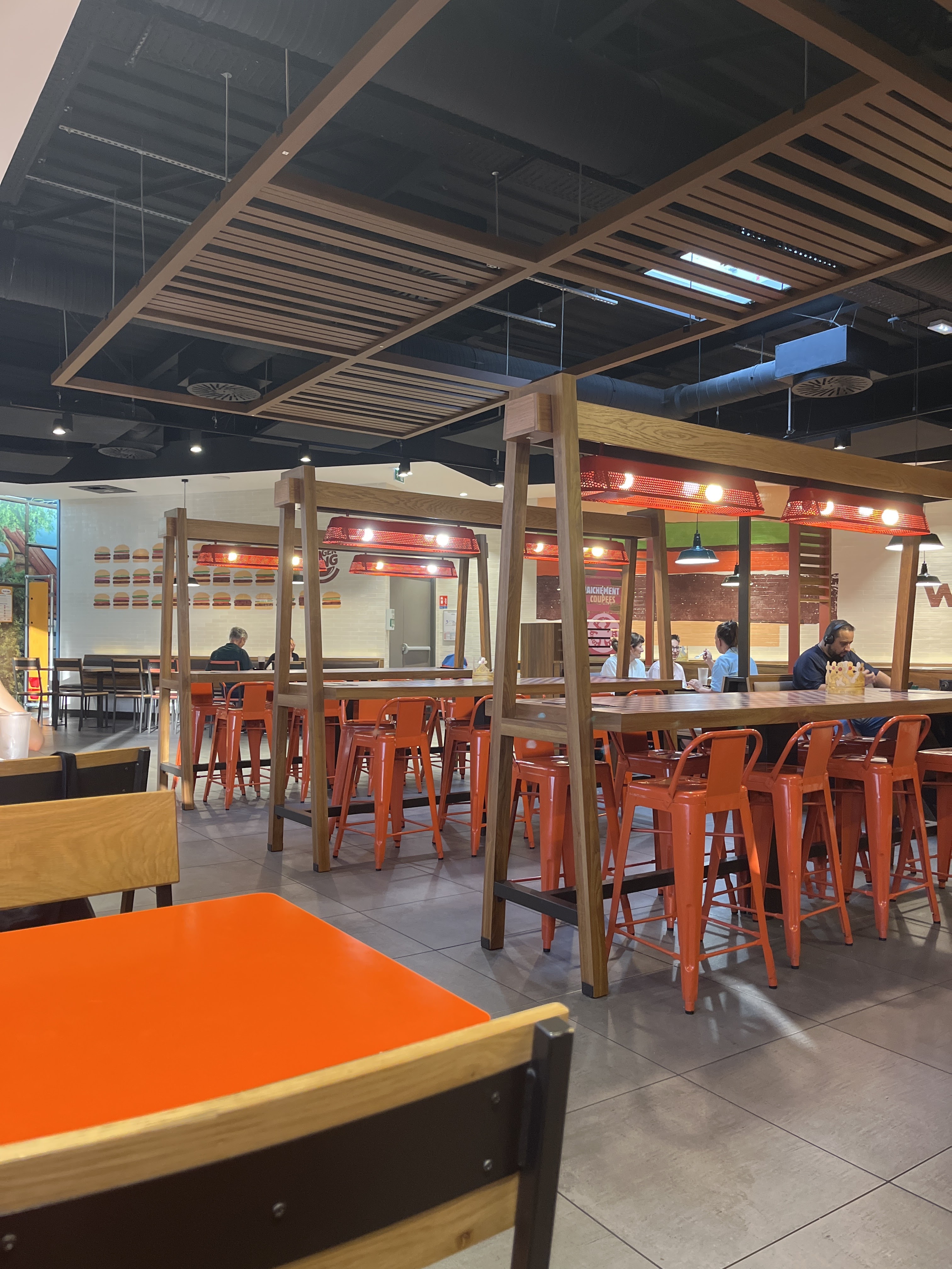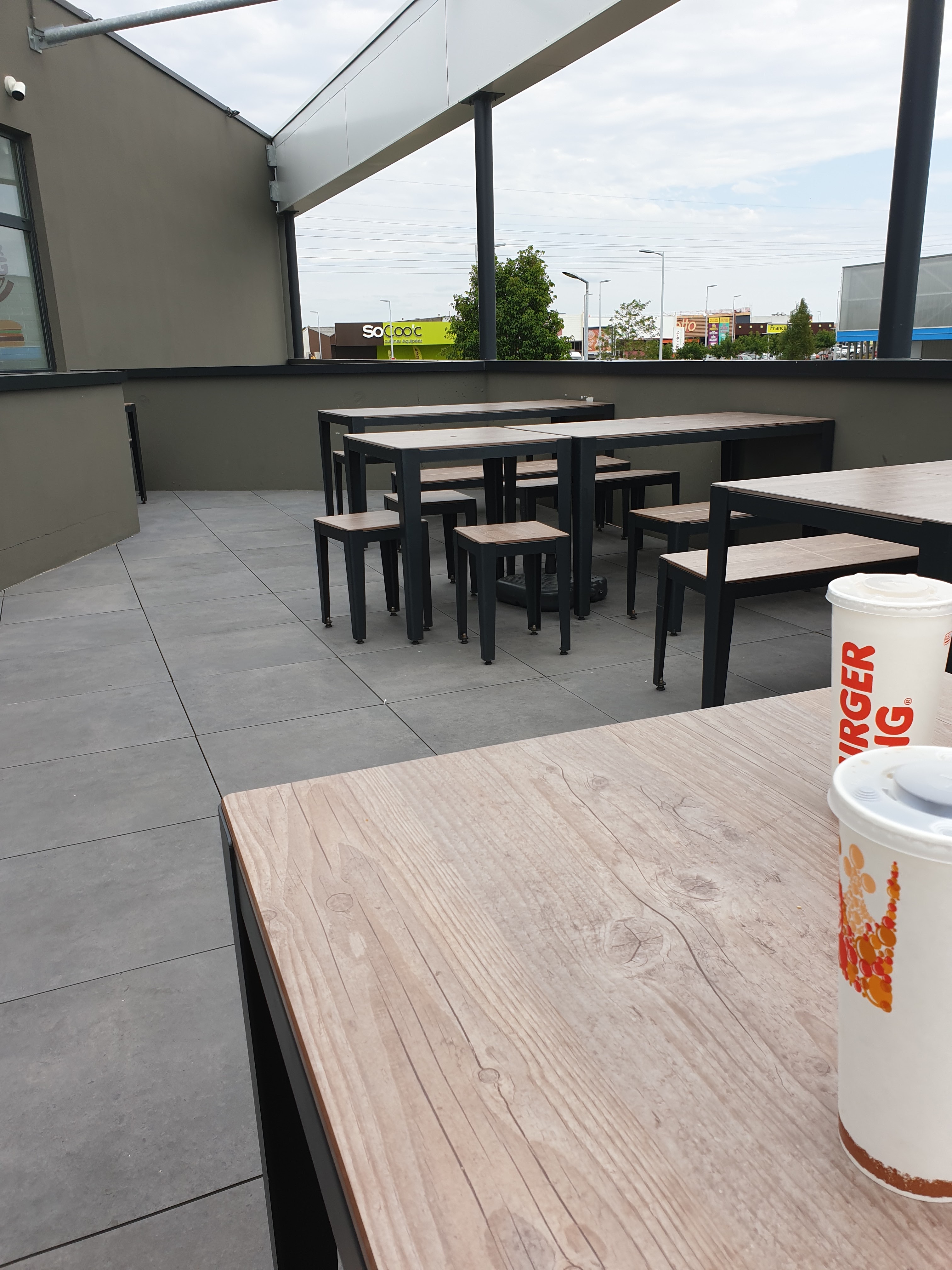 C'est la première fois que je viens dans ce restaurant. Bien positionné dans une zone commerciale avec un étage le rez de chaussée pour passer commande sur les bornes ou en caisse. On peut manger à l'intérieur mais au premier étage avec jeu enfants intérieur ou terrasse. Sinon à l'extérieur soit Rdc avec jeux enfants et des tables ou en terrasse au 1er étage.