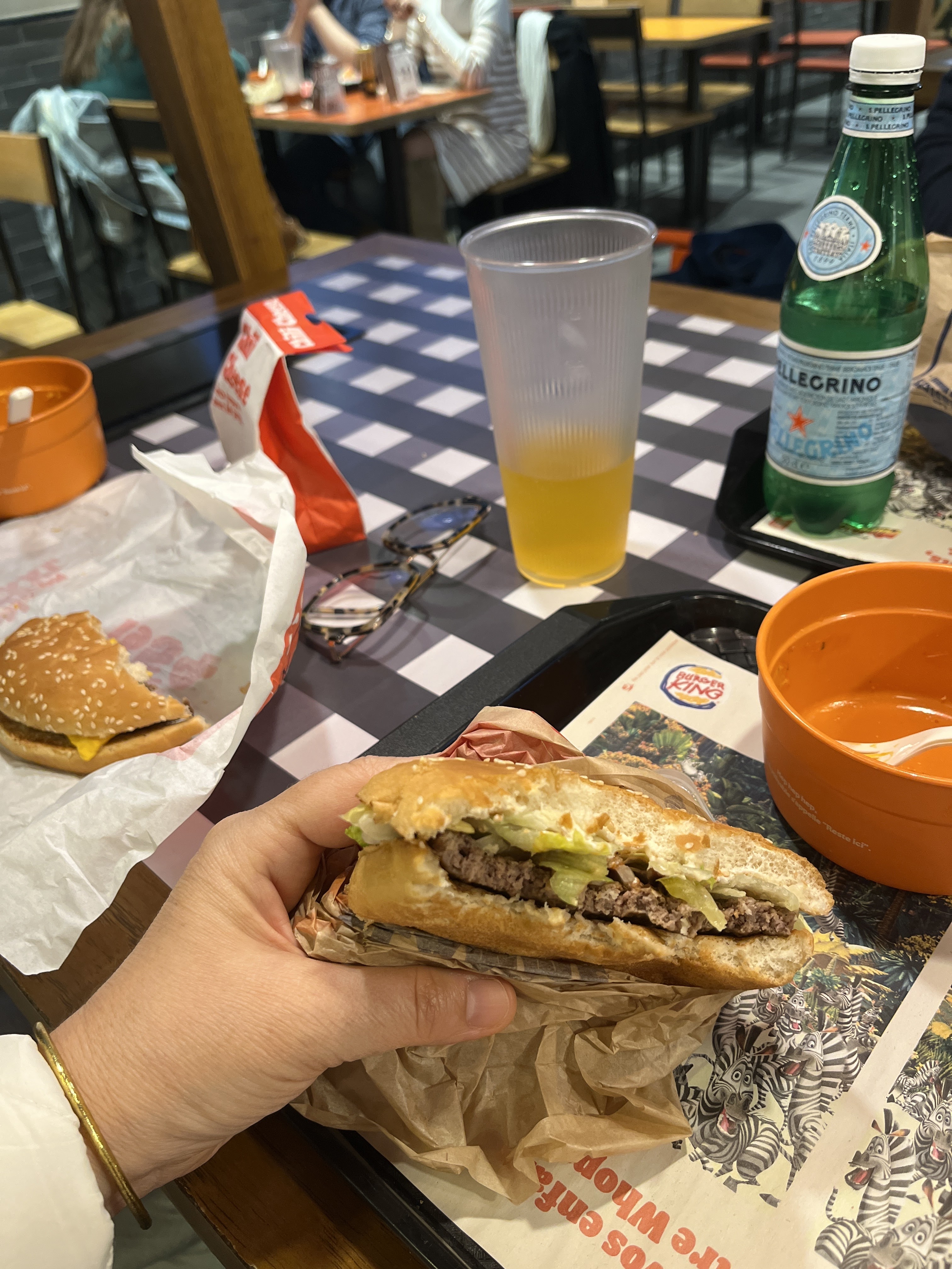 Énormément de monde dans ce Burger King donc forcément, la cuisine est faite en instantané et reste bien chaude tout au long du repas. Le service est rapide donc même par jour de forte affluence, il ne faut pas être découragé d'y aller. Je recommande ce Burger King avec sa propreté et sa grande salle pour manger au-dessus ou alors en terrasse.
