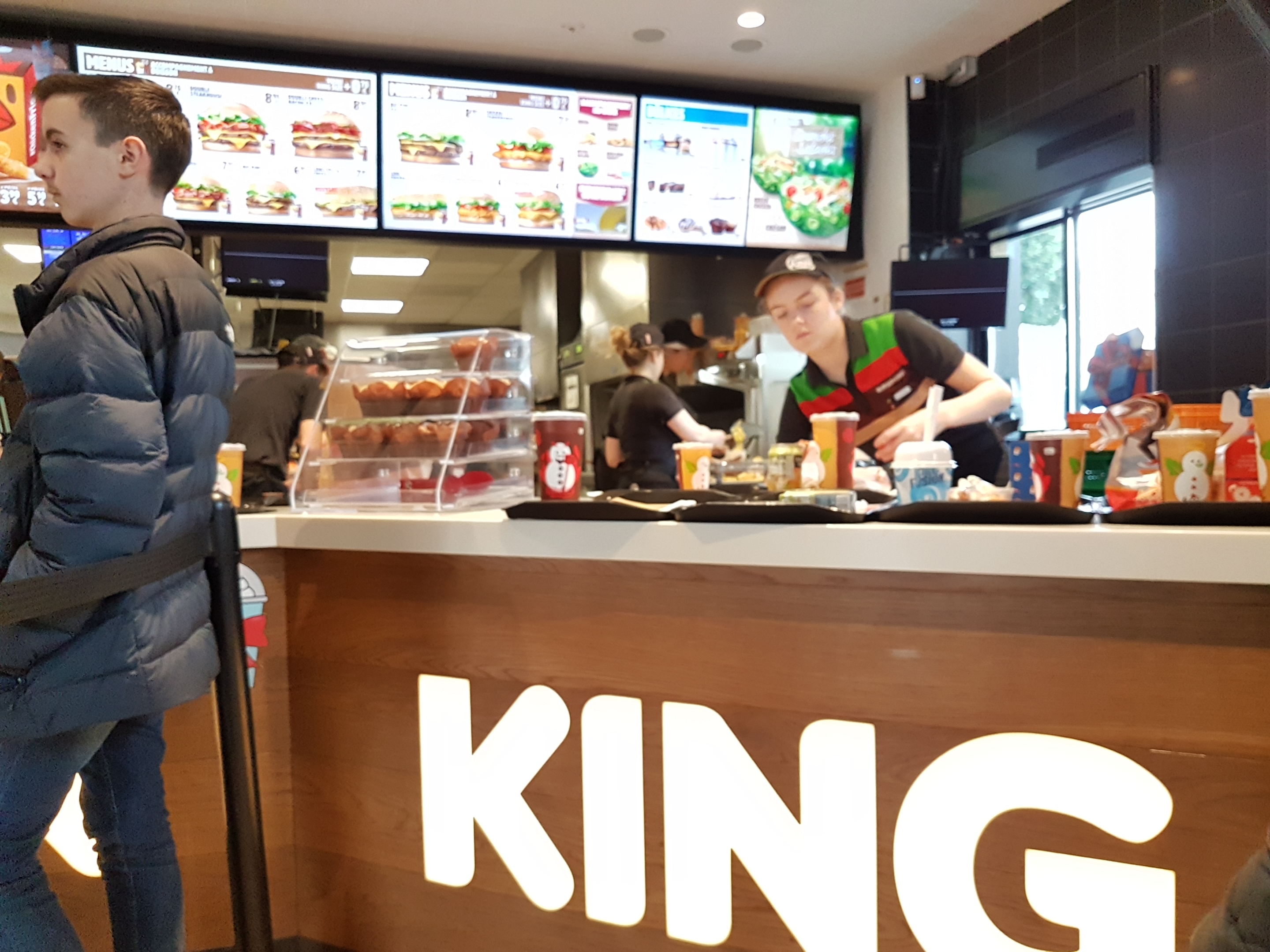 pas de fourchette, de mot king, Fries bacon à emporter, la personne qui s’occupe d’envoyer les commandes très désagréable il n’y a même pas de serviette. Alors oui il est tard et la fatigue prend le dessus mais il y a aucun professionnalisme.