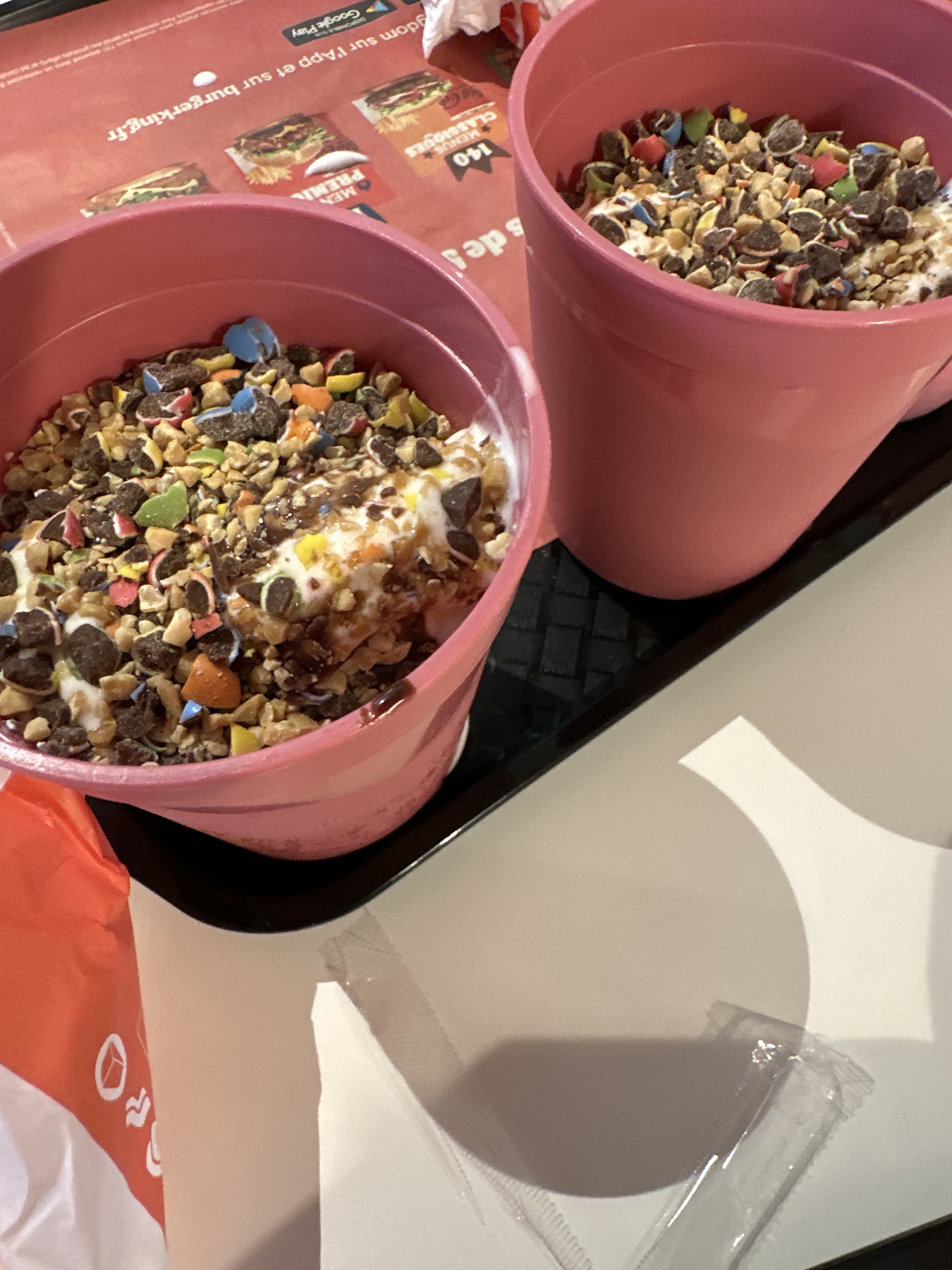Lamentable, les lieux sont sales, nettoyage absent. Les toilettes sont répugnantes. Le service est scandaleux, le personnel est à l'abandon... La sundae est de la même dimension que la mini fusion des enfants...mais à 2€90 .... C'est un lieu à éviter absolument, seule excuse pour y entrer, le forcing des enfants, vu qu'il est collé au ciné ....