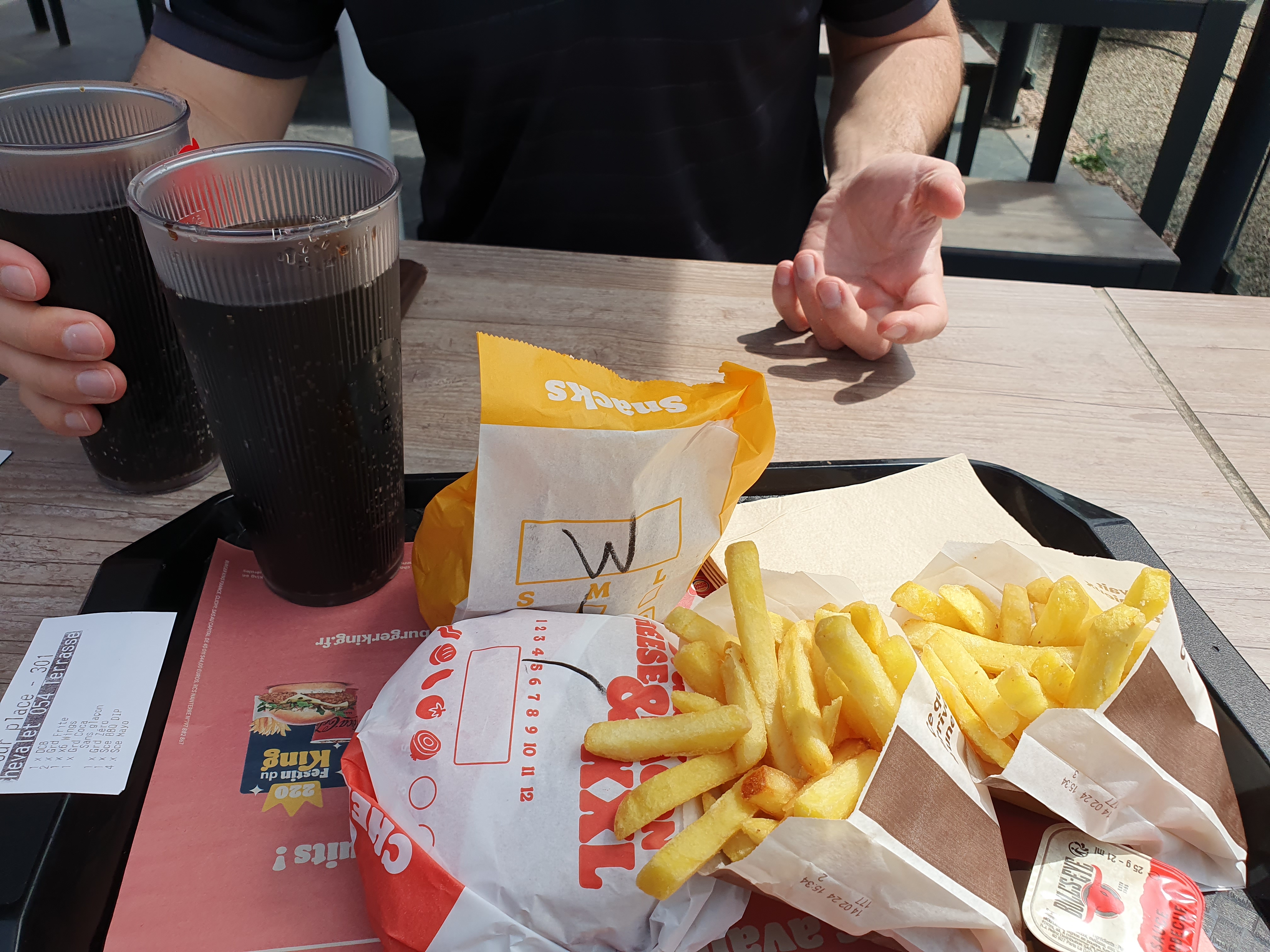 Passage a la borne arrives a la maison tout ete froid pas de sauce pas de serviettes pas de cuillere pour la glace onion rings cramés bref