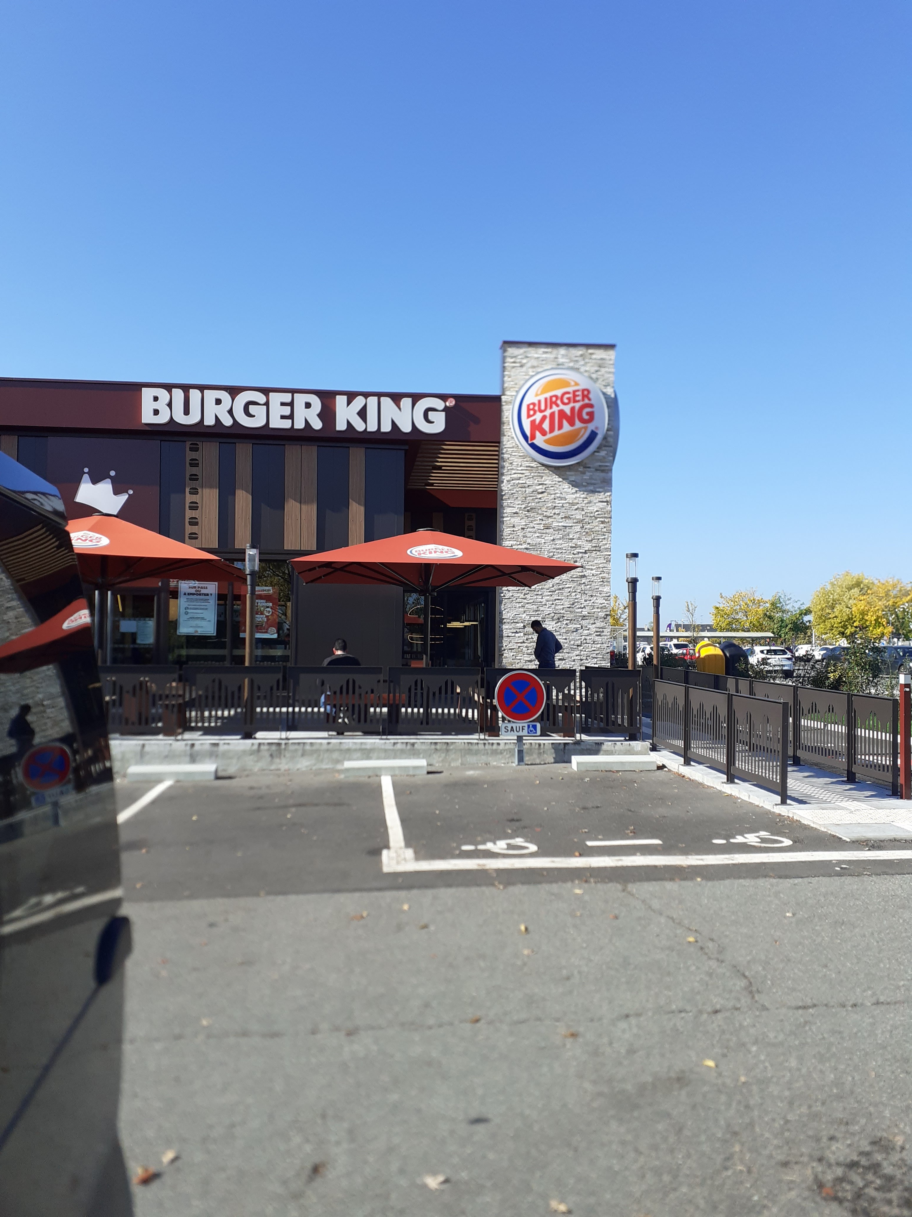 Inutile de préciser qu'on parle d'un fast food, tout le monde le sait. Mais Burger King... C'est une aventure. La première est gustative. Goûtez vous comprendrez... la différence. Les burgers sont bien meilleurs que les autres chaînes. Rien à voir avec un Burger maison évidemment. Comparons ce qui peut l'être. La seconde aventure est de suivre leur communication. Des génies ! Toujours une touche d'humour, parfois décalé, toujours maîtrisé. Qu'on les aime ou pas, on ne reste pas indifférent. La troisième c'est la fidélité. On est vraiment récompensé rapidement et on ne se moque pas de vous sur les offres. Enfin, concernant ce BK précis, il est situé sur le parking du Carrefour donc parking immense autour. Il est propre, et il respecte bien les gestes sanitaires indispensable en ce moment. Un seul hic : impossible de retirer sa commande via appli au drive.. Dommage. MAJ du 05/06/22: commande en click and collect ce jour, le soir après 22h resto presque vide. Je déclenche la préparation de ma commande quelques kilomètres avant d'arriver. Une fois sur place, je ne vois que ma commande en préparation. J'ai attendu 15 min encore au moins dans le resto pour être servi. Trop long ! Du coup frites froides ! Par contre les commandes bornes qui se sont ajoutées ont été plus vite traitées.