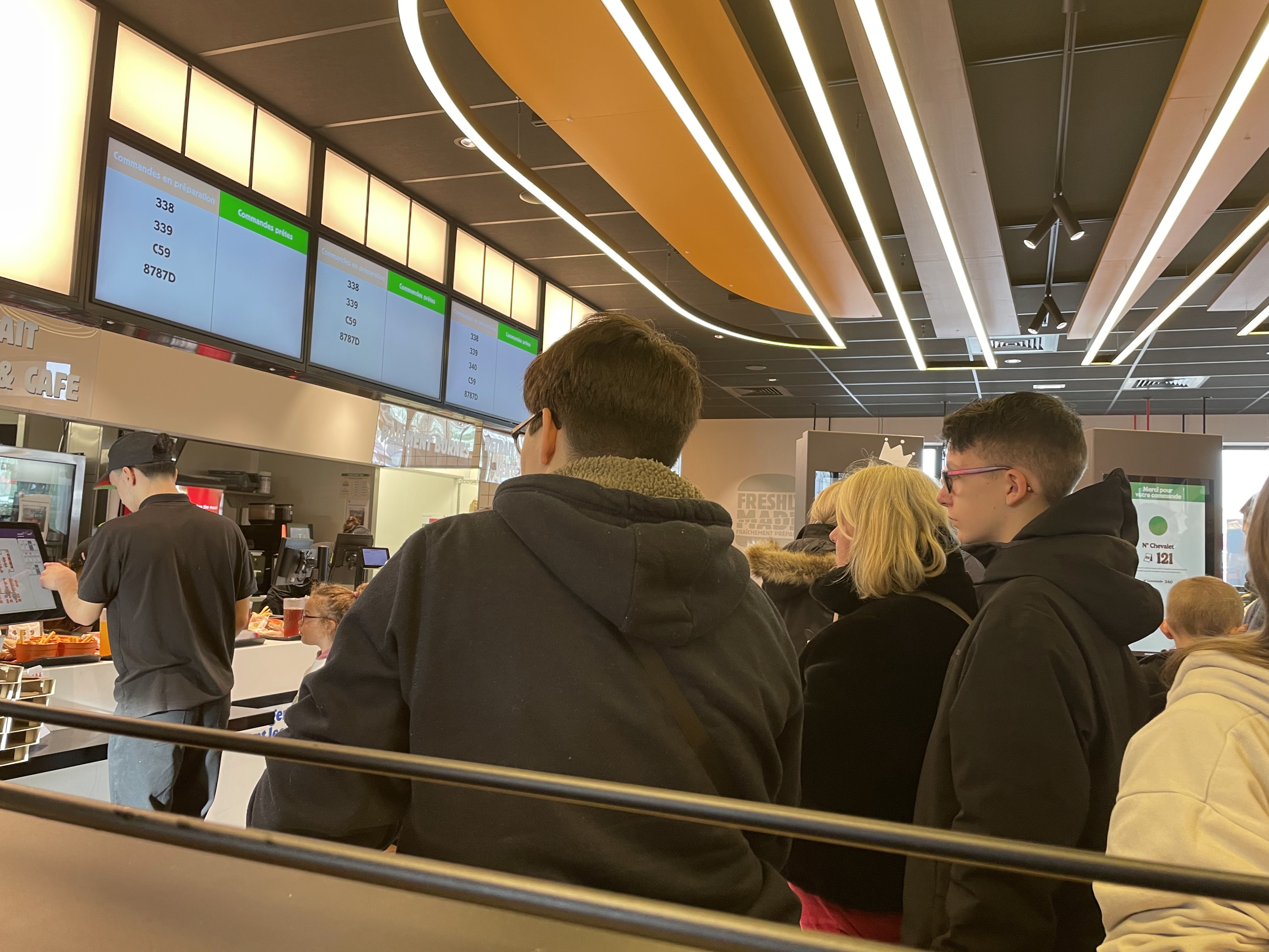 Restau bien tenu, propre, lumineux, avec de nombreuses bornes pour passer commande. Service avec le sourire, pourtant fait rapidement vu le monde. Pas beaucoup de bruit malgré des enfants dans leur espace jeux. Repas chauds et sans attente. Top.