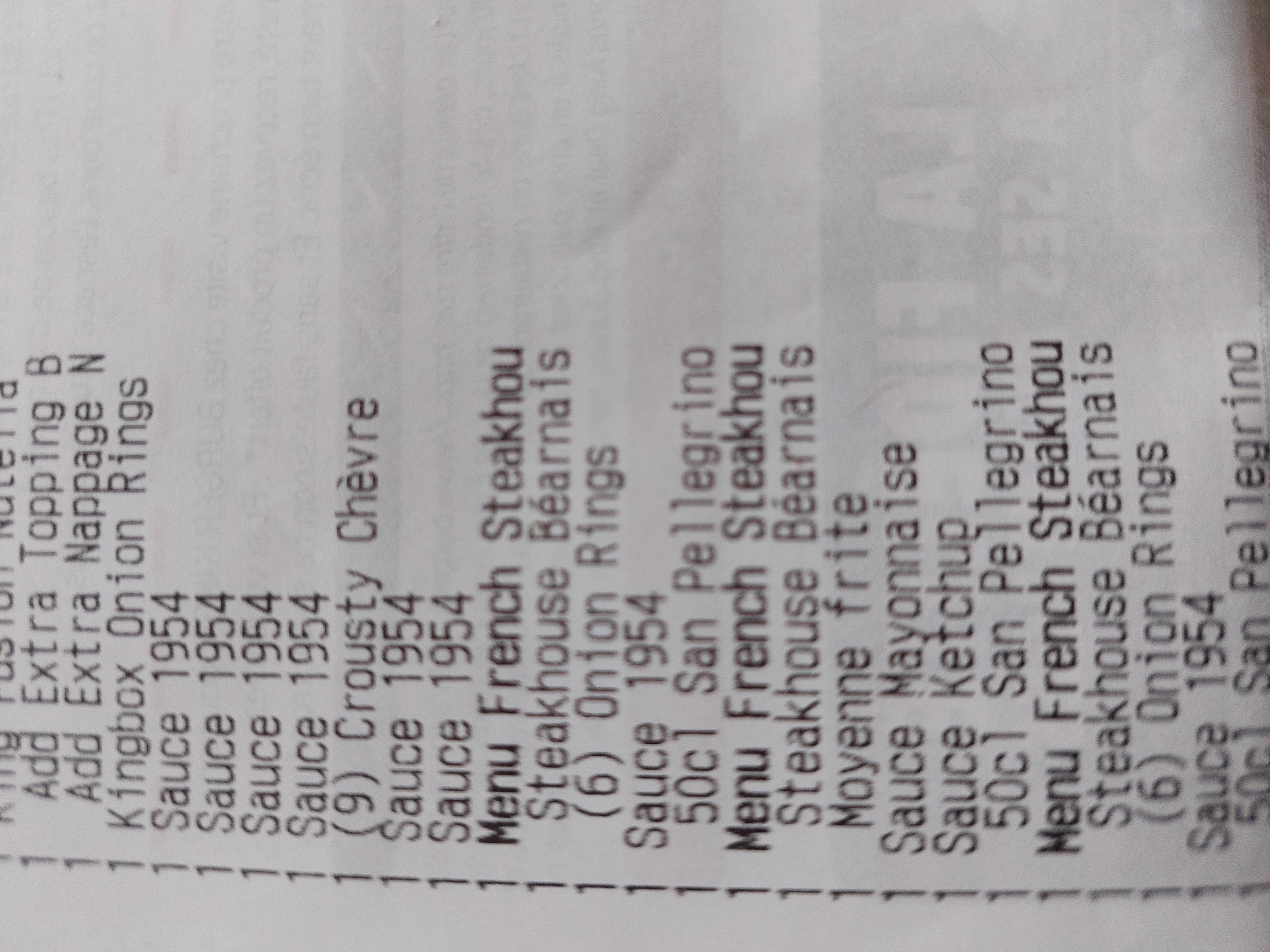 Ne mette jamais les sauce et beaucoup d’oublie constater sures commande à croire que ces les employer qui paie les sauce comprimer dans notre menu non servie je comprend pas qu’on paie une sauce a 50centime qu’on a même pas honteux !!!!