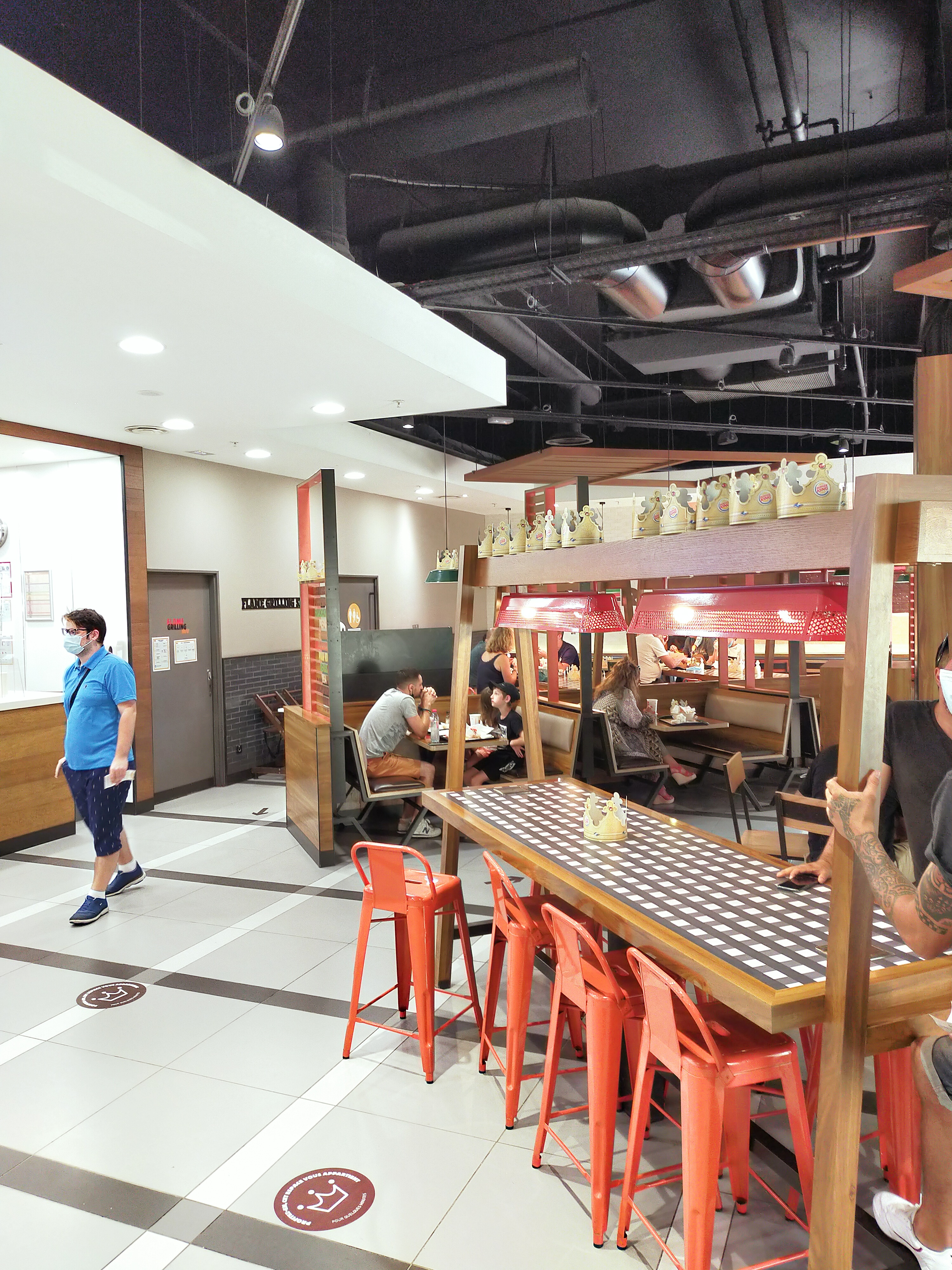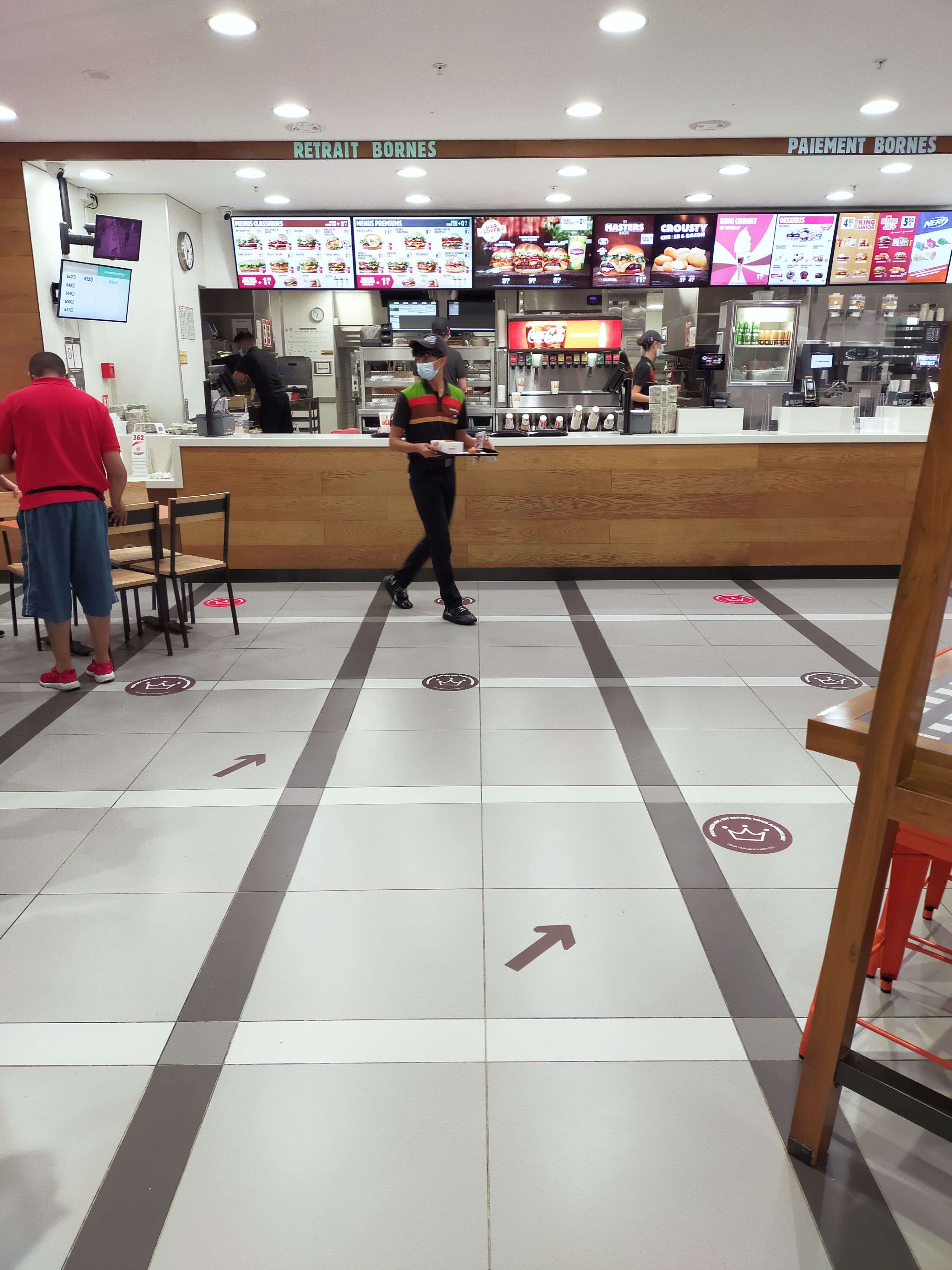 Service rapide, commande apportée par les employés directement à nos tables et les repas sont servis chaud. Les protocoles sanitaires sont bien respectés, dès l'entrée on doit utiliser des gants pour pouvoir passer commande aux bornes. Les menus que nous avons pris étaient bons 👍 Nous y sommes allés un lundi, à vérifier si cela se passe aussi bien le week-end.