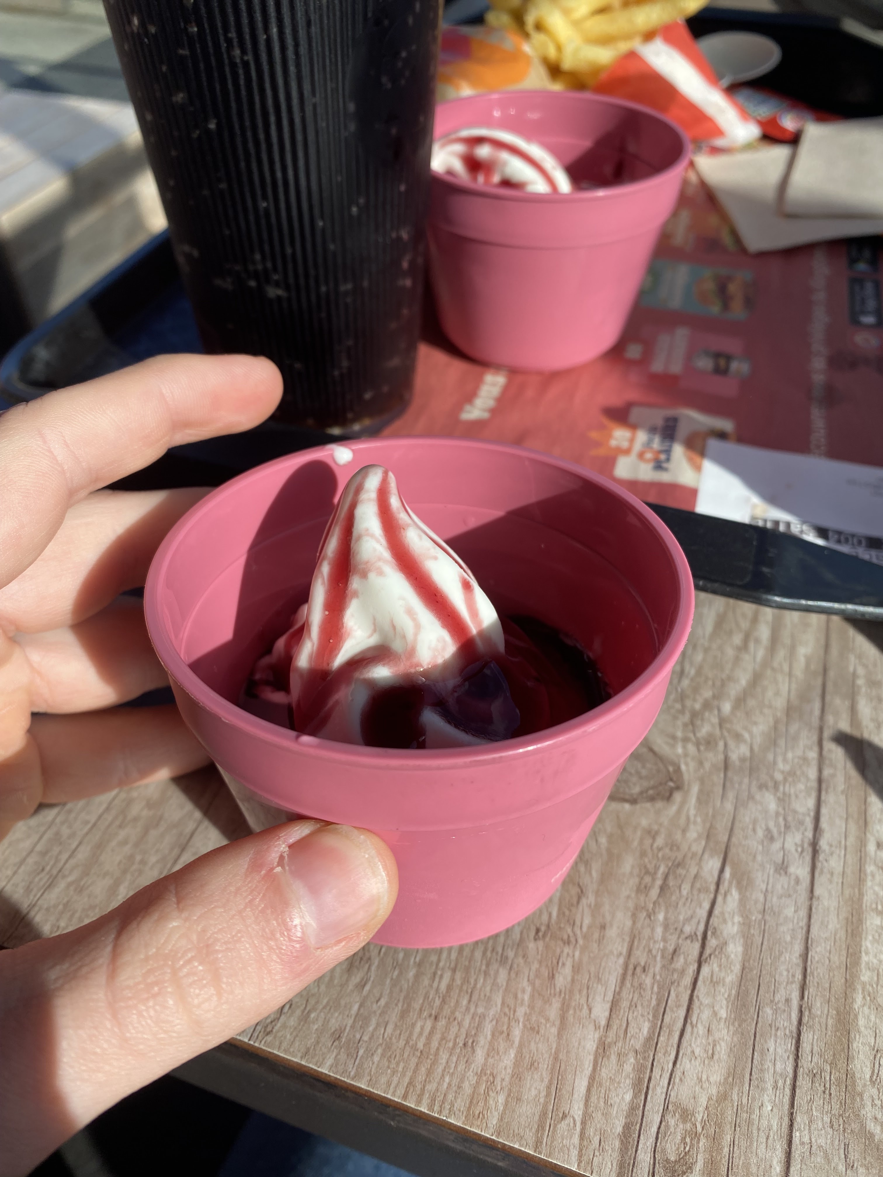 La shrinkflation a encore frappé, j’apprécie manger au BK mais j’ai été très choqué de la taille du Sunday payé 2€70, en 5 bouchées c’était fini. Quand j’ai interrogé un serveur sur la quantité il m’a répondu « Bah c’est un sunday quoi ». Bon bref oubliez les dessert au BK !