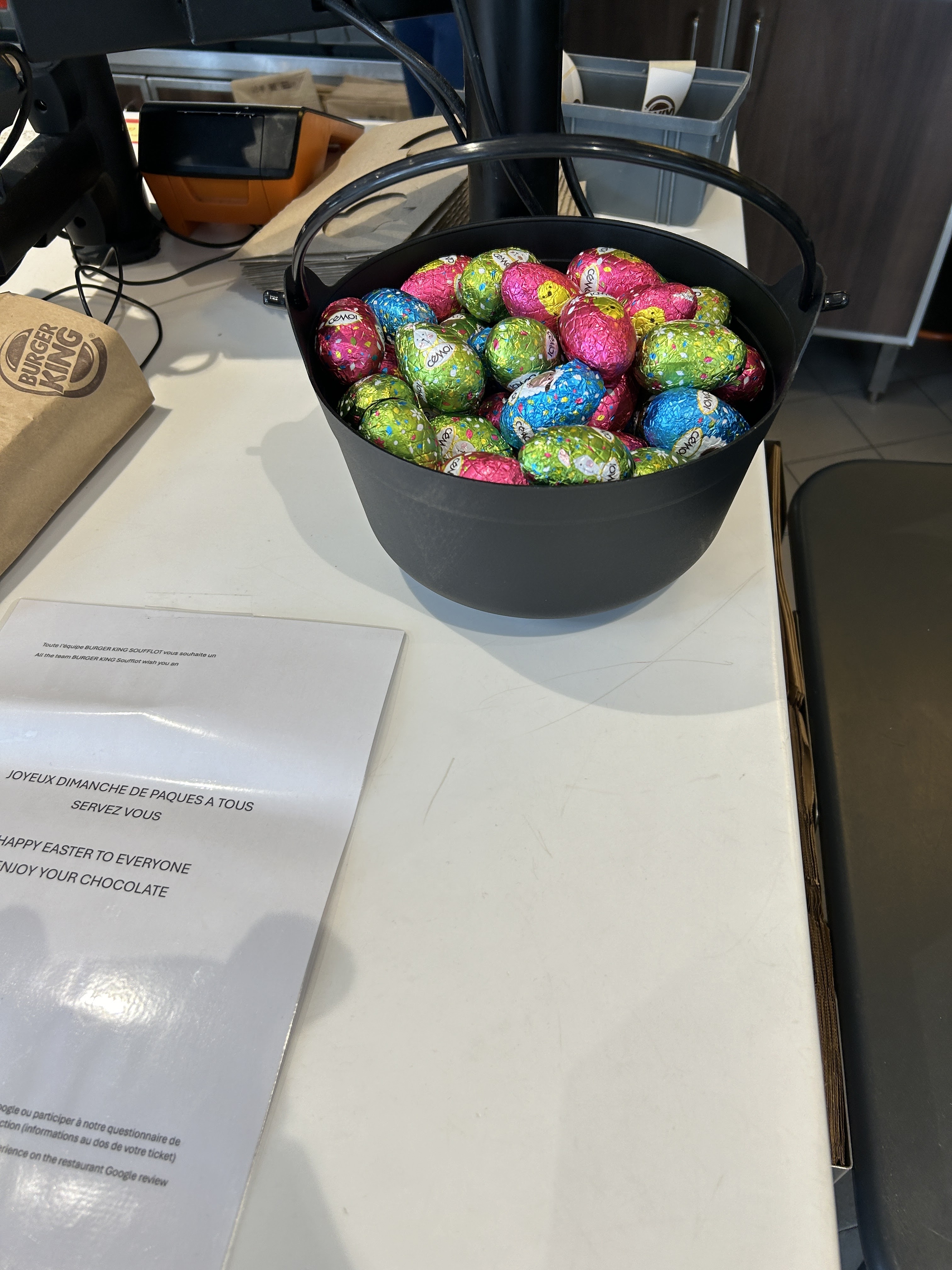 Très bonne expérience au sein de ce Burger King. Tant pour la bienveillance des employés que pour la rapidité et l’efficacité dont ils font preuve. C’est un réel plaisir de venir à chaque occasion, je recommande vivement !