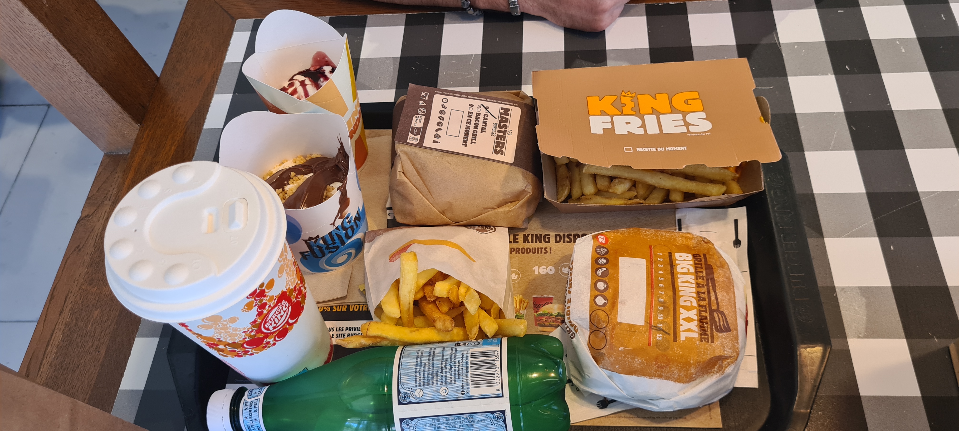 Les 2 Burgeret les frites avec fromage et oignons frie très bien mais les frites normal bof le king fusion Nutella bof la glace n'avait pas de goût. Je suis un peu déçu par rapport à avant que c'était super bon