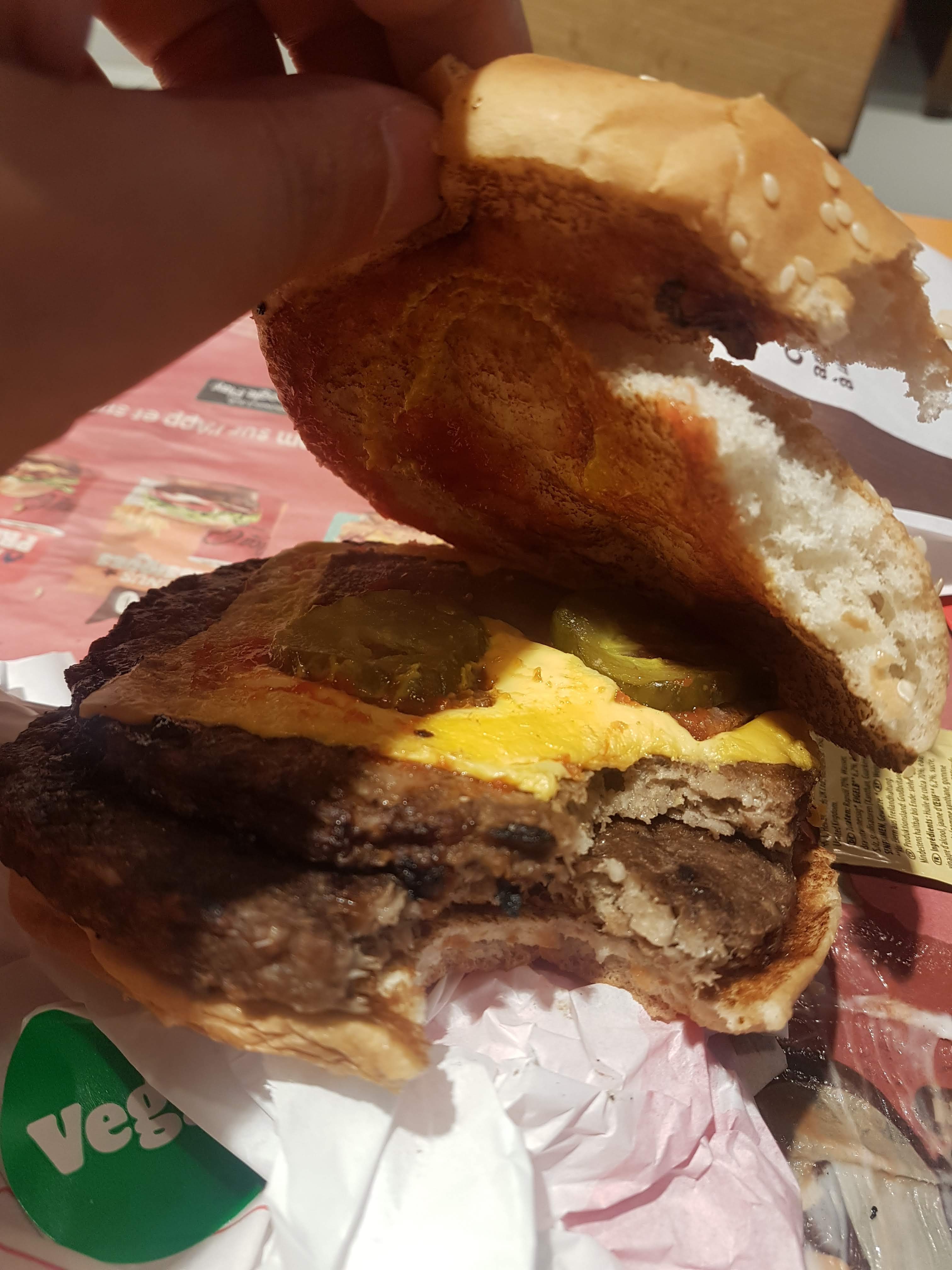 Horrible expérience à ce Burger King. J'ai payer 11 euros pour un menu Double Cheese Veggie. J'ai jamais goûter une telle horreur. Tromperie sur le goût et sur la composition du burger. Du vol tout simplement. Plus jamais!