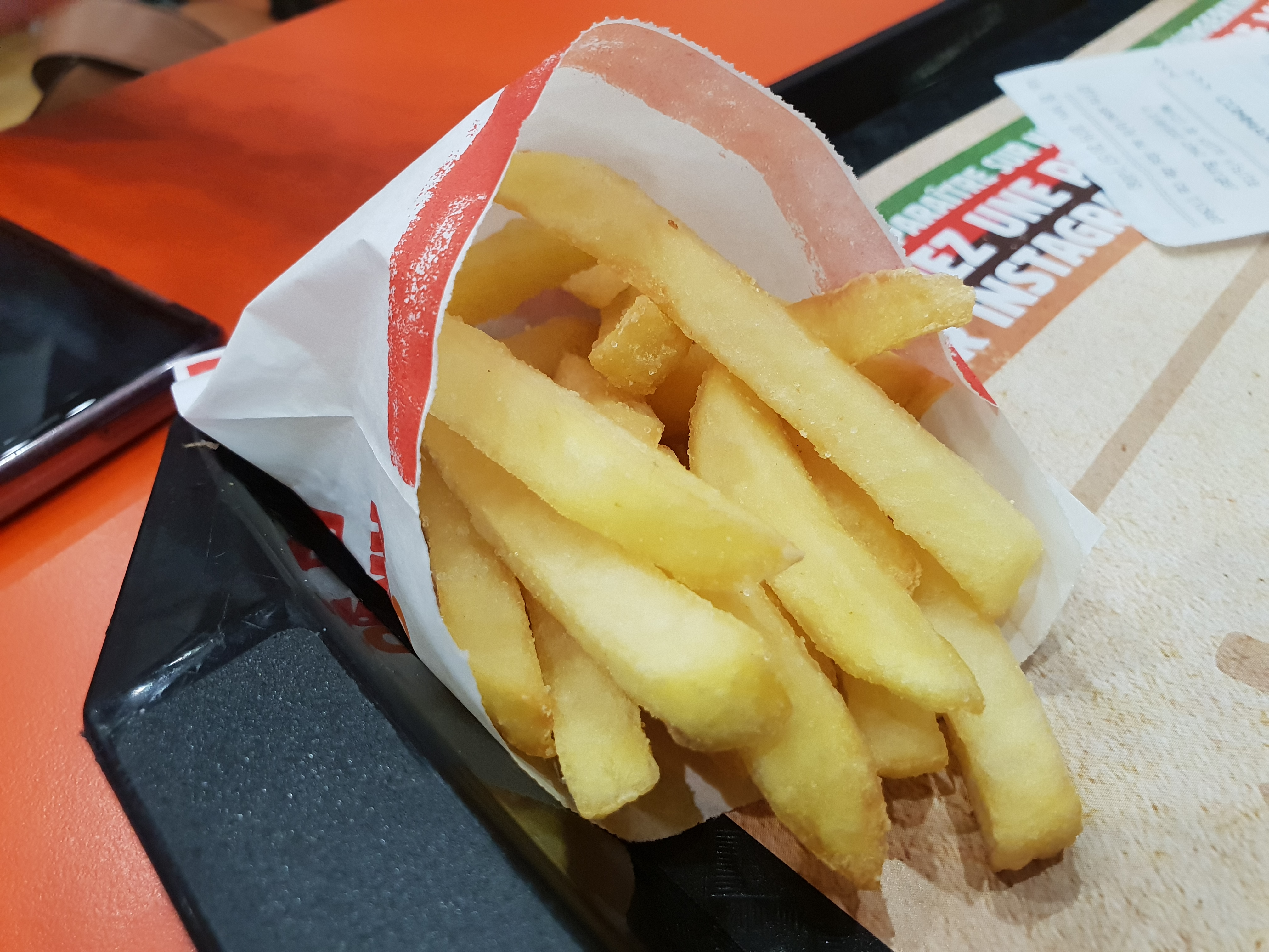 Burgers littéralement froid (quand on mange sur place pas fou… Les wc côté hygiène pas de papiers toilettes le sol pas hyper propre.. j’ai connu mieux.