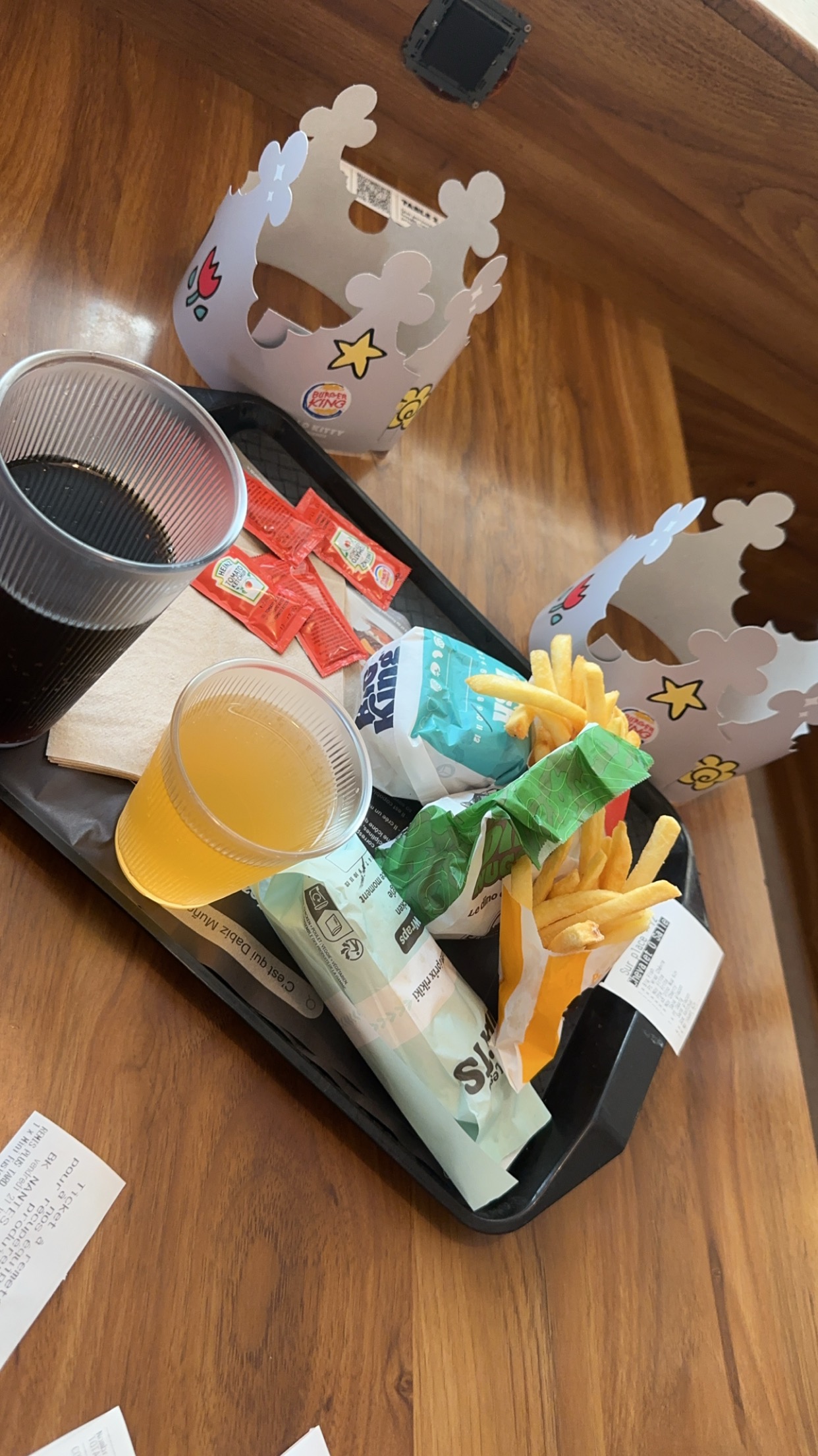 Les burgers étaient pas très garnis, c été pas génial de se sentir observer dans la galerie marchandes, c est petits. Les gens entasser à côté de nous en groupe quand on mangeait pendant que ils attendaient leurs commandes et une file énorme pour commander. Le service étaient rapide mais quand 5 personnes qui ont commander qui sont servis avant c est mal organiser. Bref on a pas apprécier ce burger king.