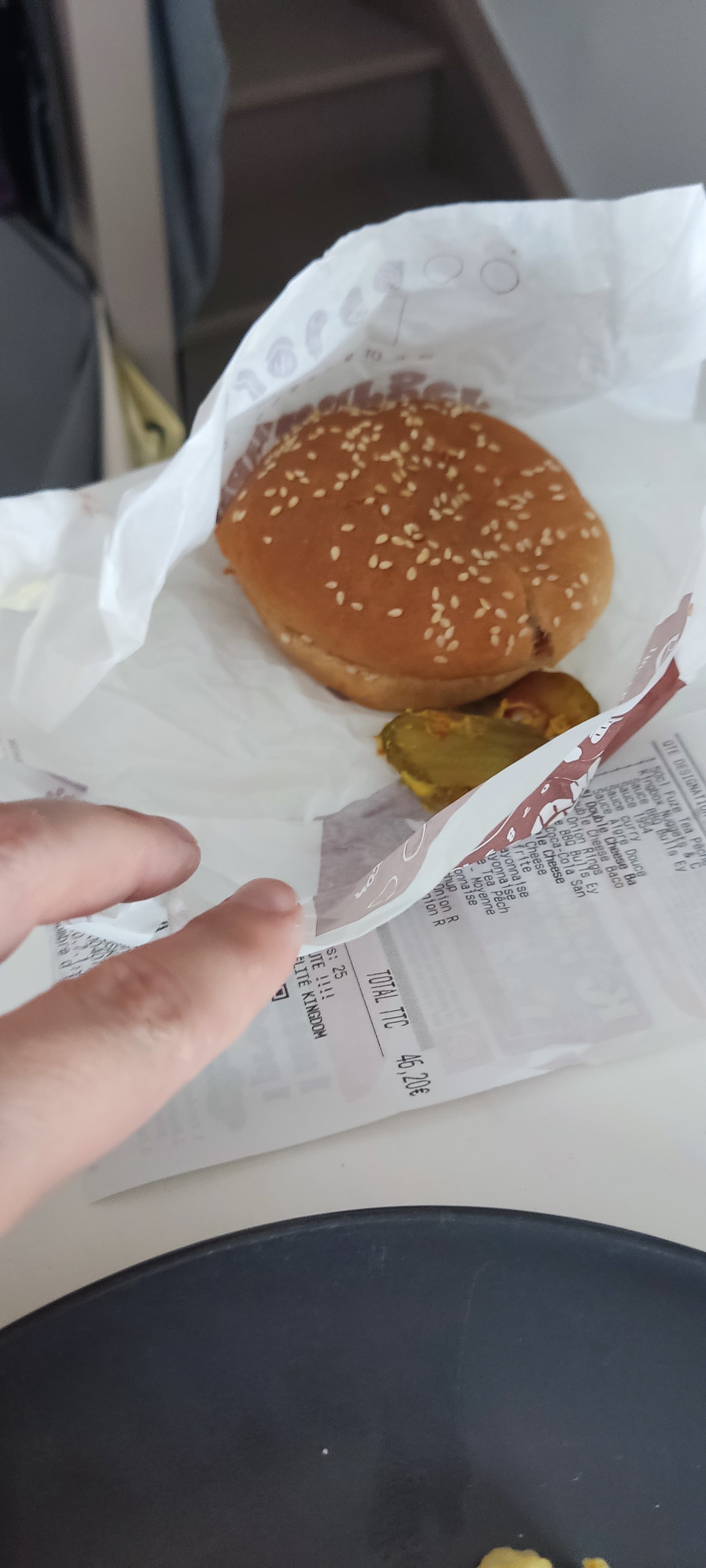 Pour la 3 fois erreur de commande . Après plus de 30min d'attente voilà ce que je trouve en arrivant à la maison . Pour moi ça suffit, même si je préfère largement bk à McDonald's malheureusement je ne reviendrai plus .