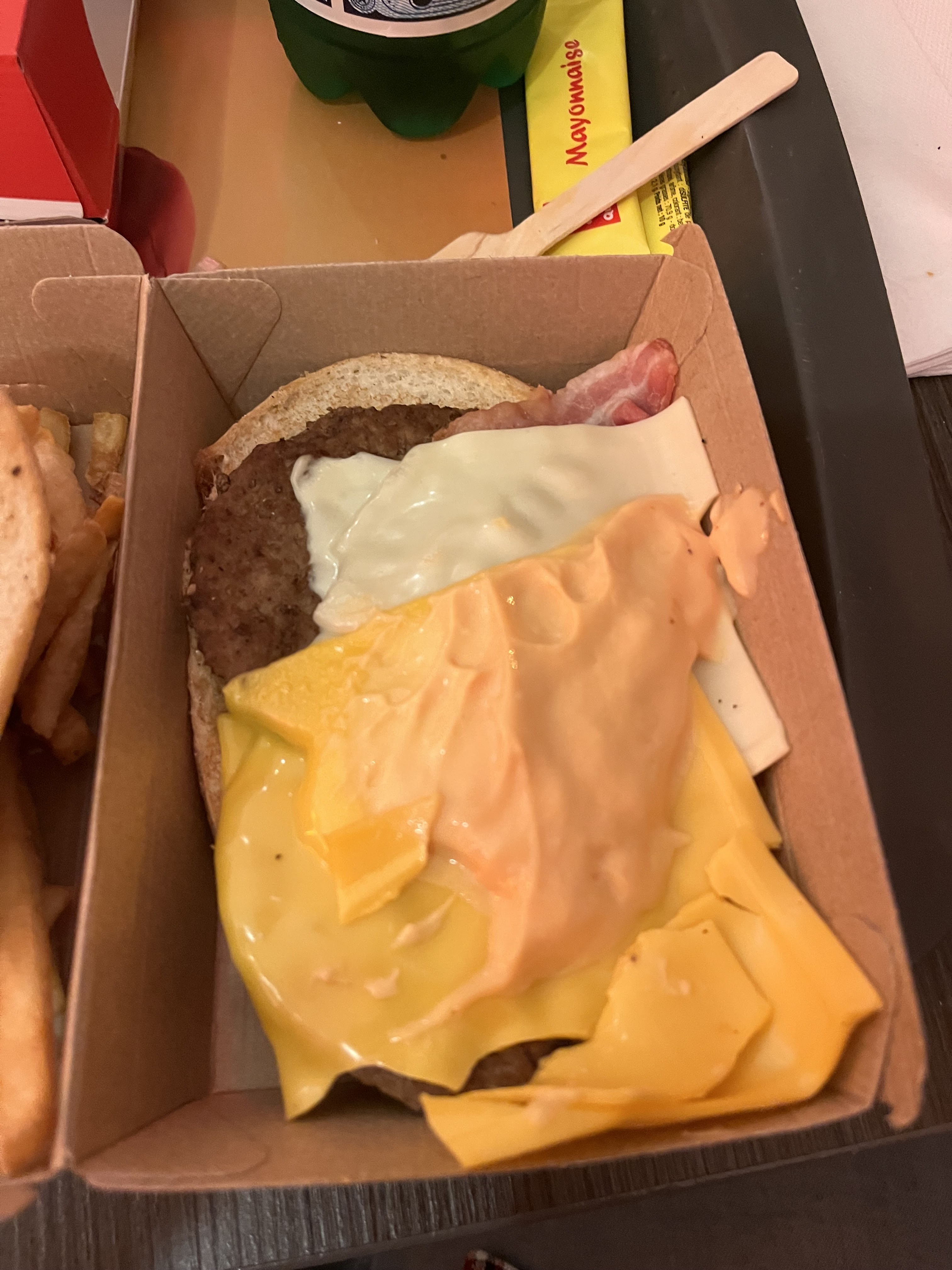 Honteux , nous avons commander un Méga Giant sans bacon et il en étais remplis bien sûr mon amis qui ne mange pas de porc a bien été surpris , la boisson n’est même pas remplie au moins un minimum pour un prix de 3,55€ fin bref