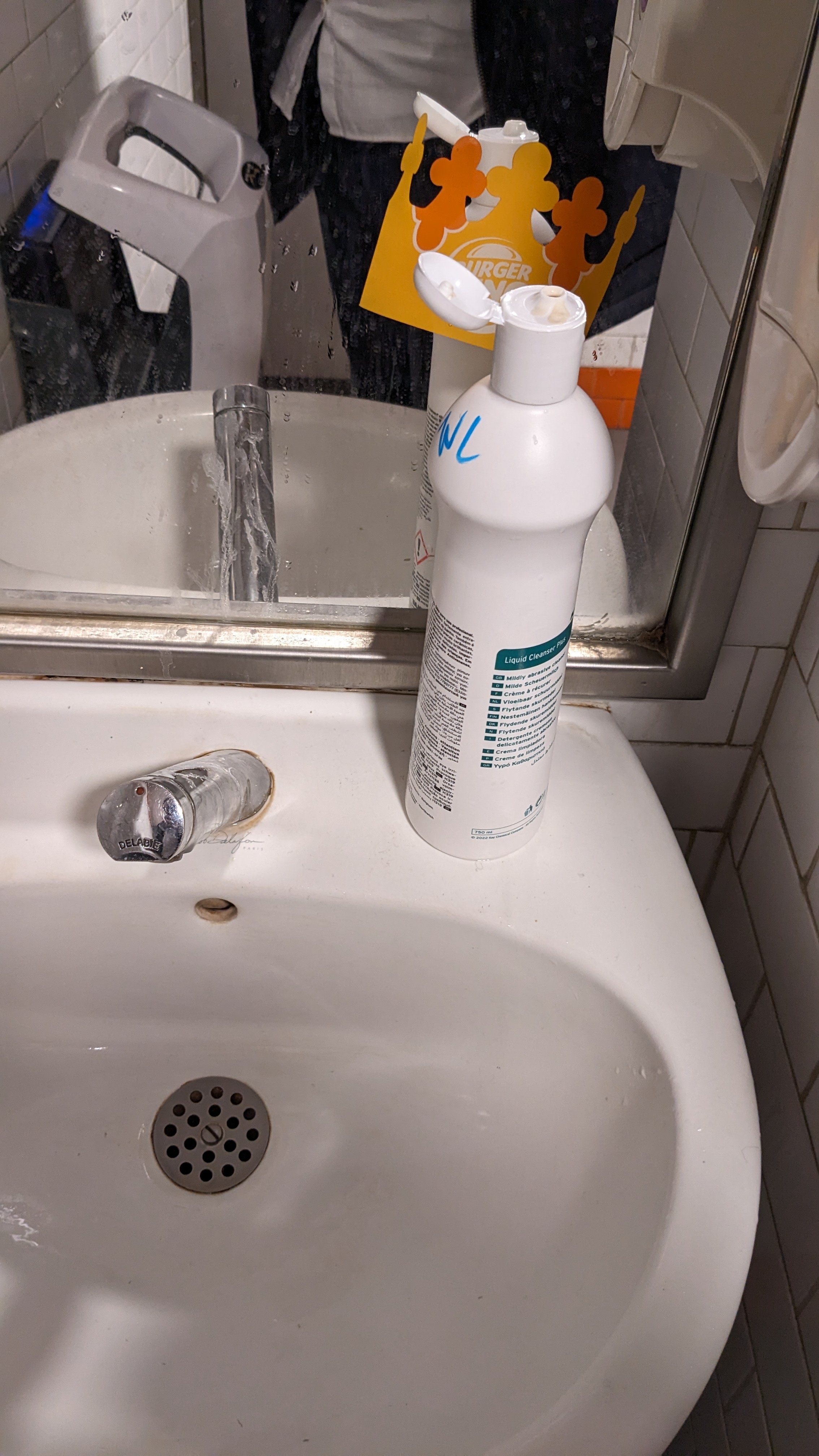 De la crème à récurer à la place du savon dans les toilettes hommes ça donne une idée de l'hygiène en cuisine.... 🤮