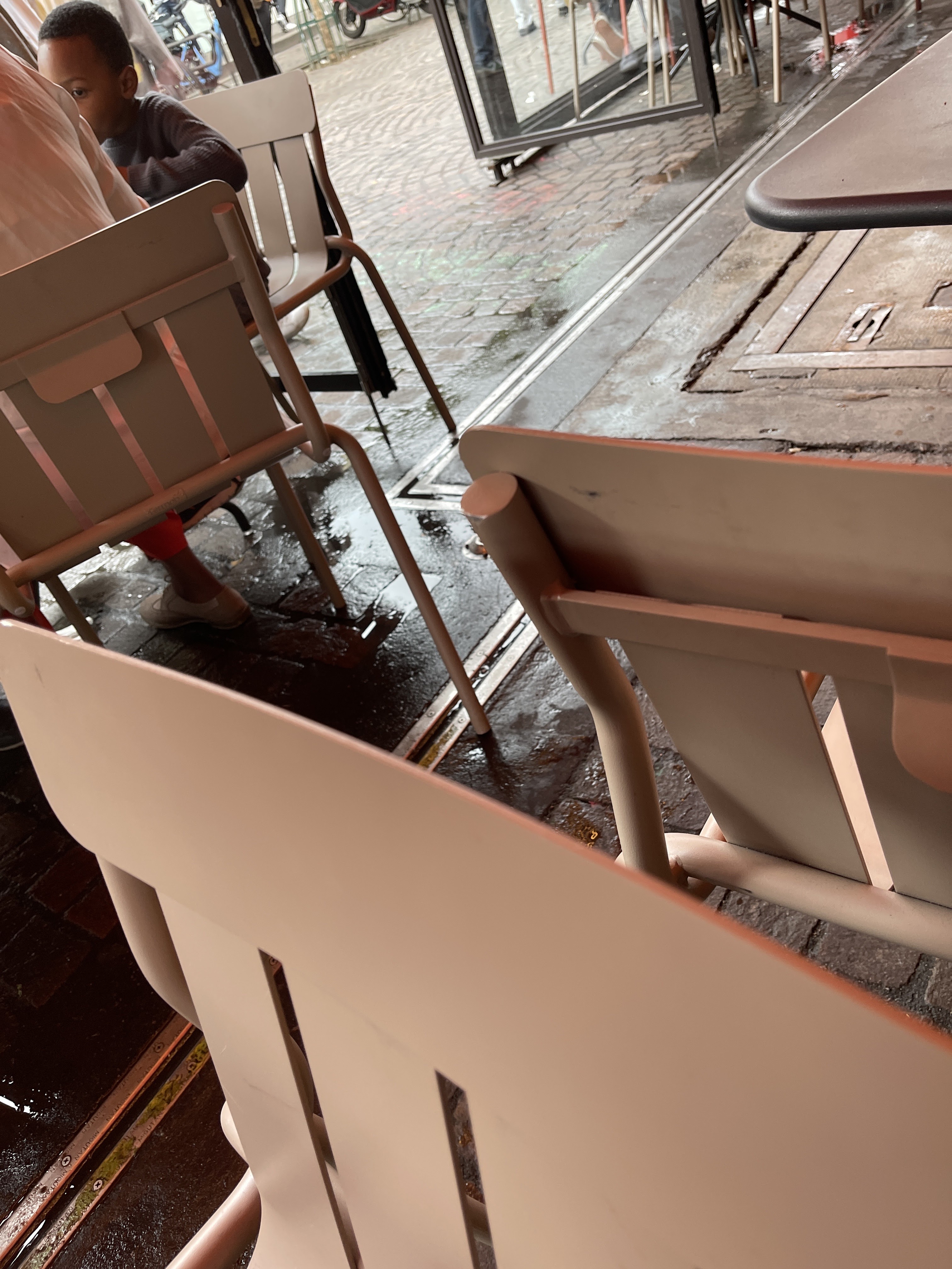 Excréments de pigeon dans mes cheveux et sur mon manteau, clients qui me bousculent et renversent ma boisson résultat mon menu et mes vêtements mouillés, mendiants qui demandent de l’argent toutes les minutes. Bref, vous m’aurez comprise, restaurant à fuir !!!