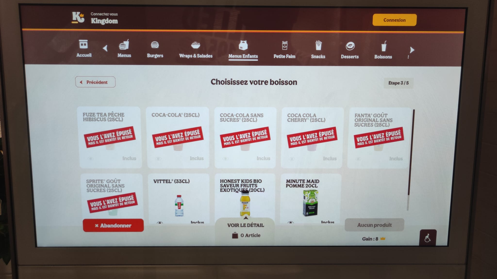 Rien de bien, mauvaise commande je demande un coca cherry je reçois un fuze tea et mon ami demande un coca et le reçois non pétillant, très mécontent surtout pour une aussi grande chaîne
