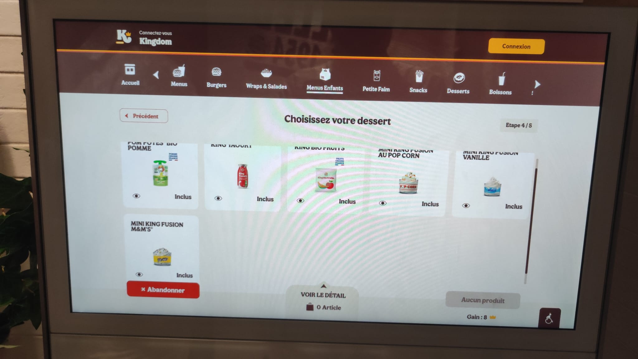 J’ai voulu utiliser un coupon pour un burger a 2€ obtenue à la roulette je n’est pas pu l’utiliser jusqu’à la ça va encore, je n’est pas eu de reçu de ticket de caisse à la borne et après avoir passer commande on m’annonce qu’il n’y a plus de wings j’ai donc était obliger de prendre des nuggets malgré le fait que ce n’était pas ma commande initiale ( il n’y a plus de wings 1h après l’ouverture) très décevant je déconseille fortement