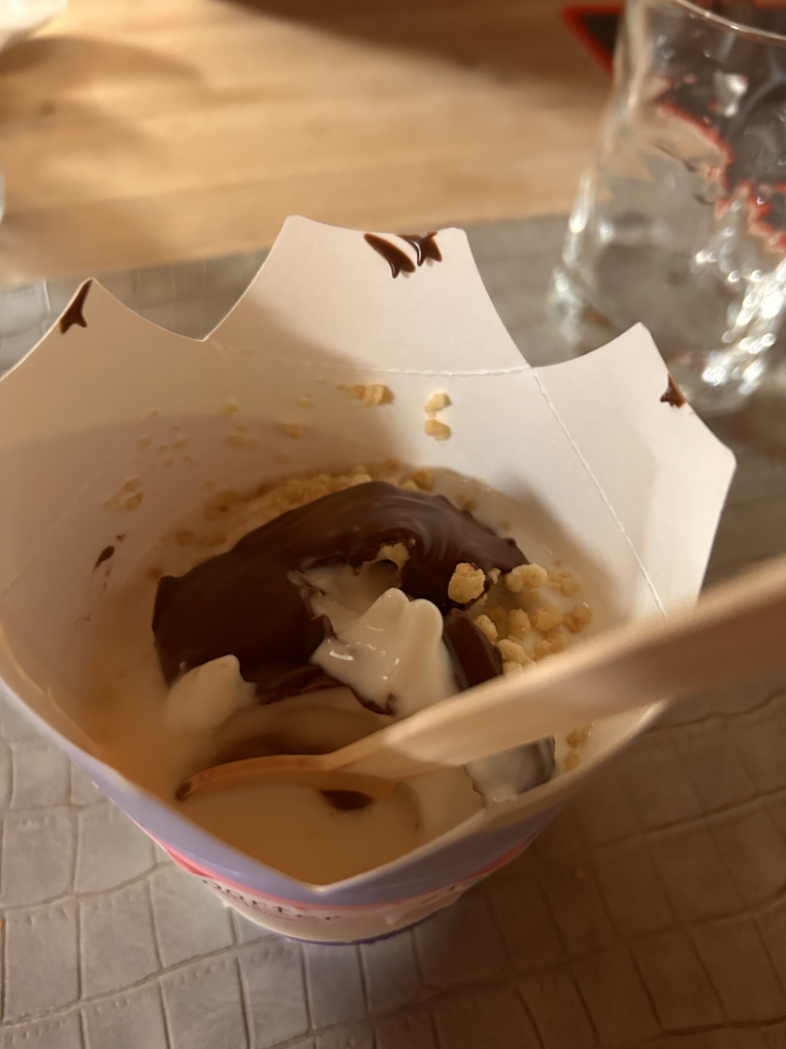 Pensez à être plus radin sur le topping, ça serait con d’en avoir pour son argent n’est ce pas ? (4€ pr une glace avec 2gr de topping c’est léger, faites un effort à l’avenir)