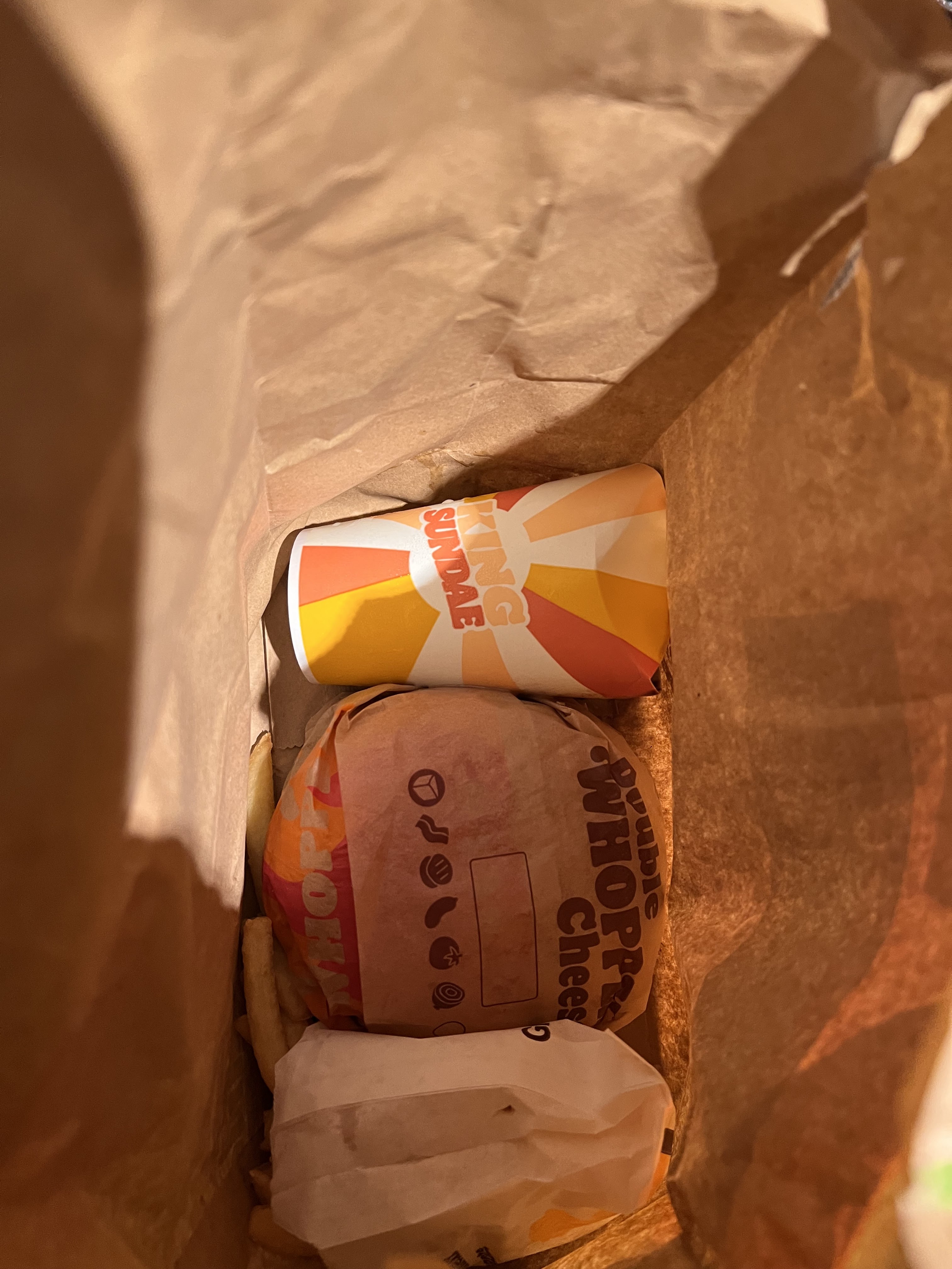 Double Whopper Cheeeessseee sans fromage... Normal. Pas de sauce pour les frites et pas de serviette. Pas mal en livraison. Prochaine étape? Livraison mais je dois venir chercher? Honteux. Et bien sûr restaurant injoignable.