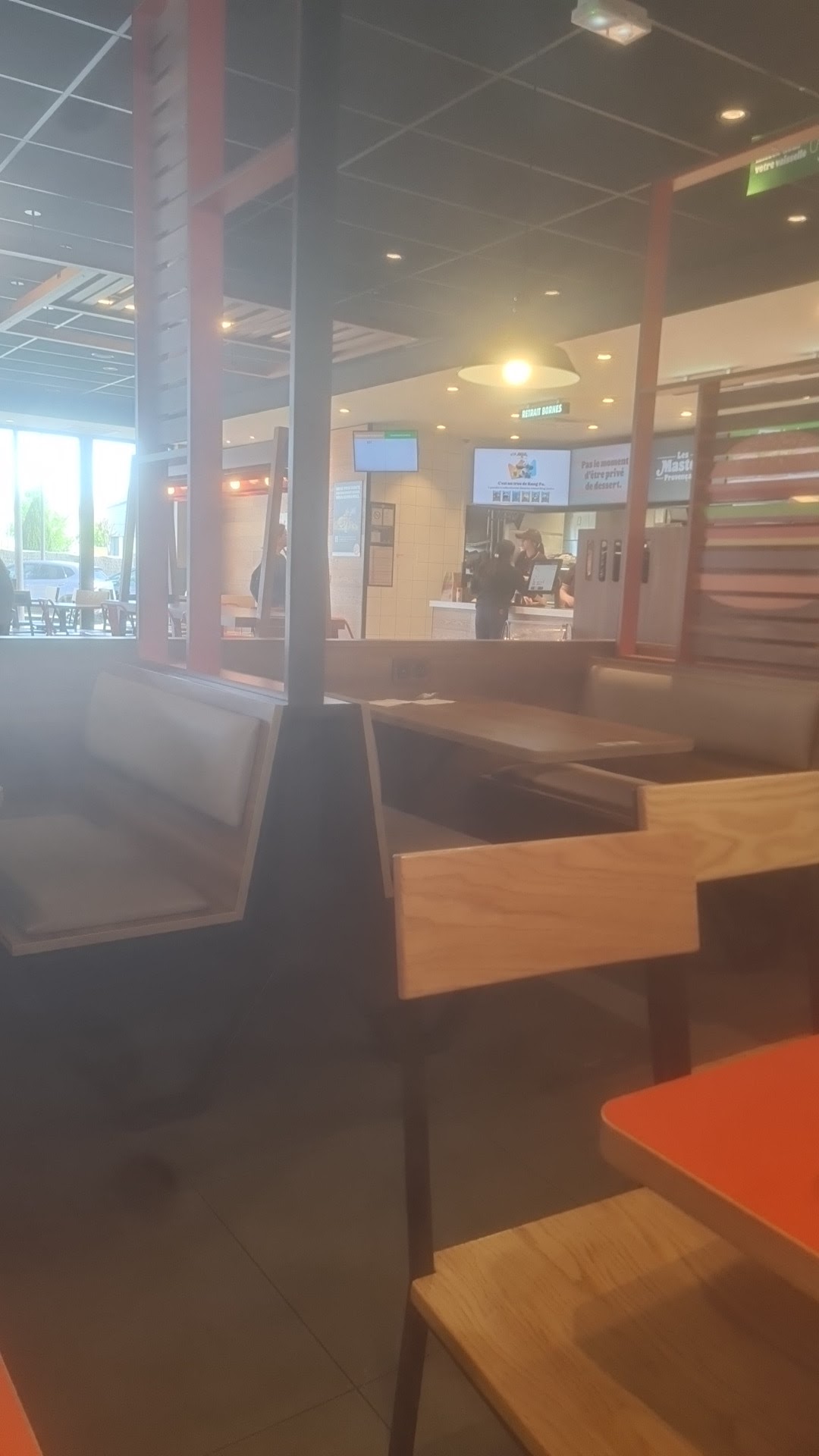 Restaurant propre et service au top, pas de retard, commande reçue en moins de 5min et personnels agréables et souriants !