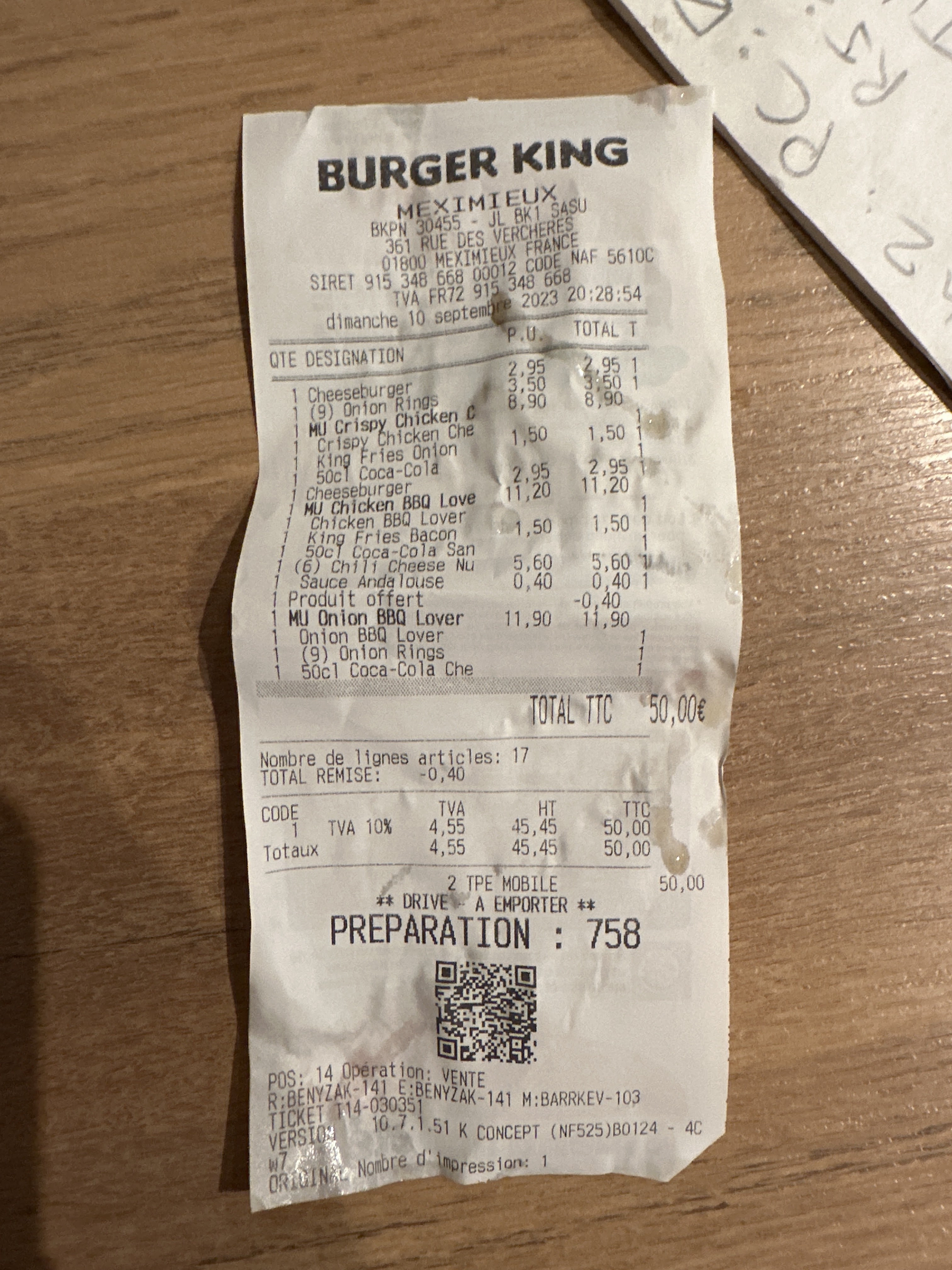 Après 48h sans avoir manger car j’étais très malade le repas au BK m’a beaucoup réconforté, même si j’ai eu les yeux plus que le ventre hihi tout étais super une étoile en plus pour l’attention porter en fin de repas « petit café ou petite glace » 👌👌