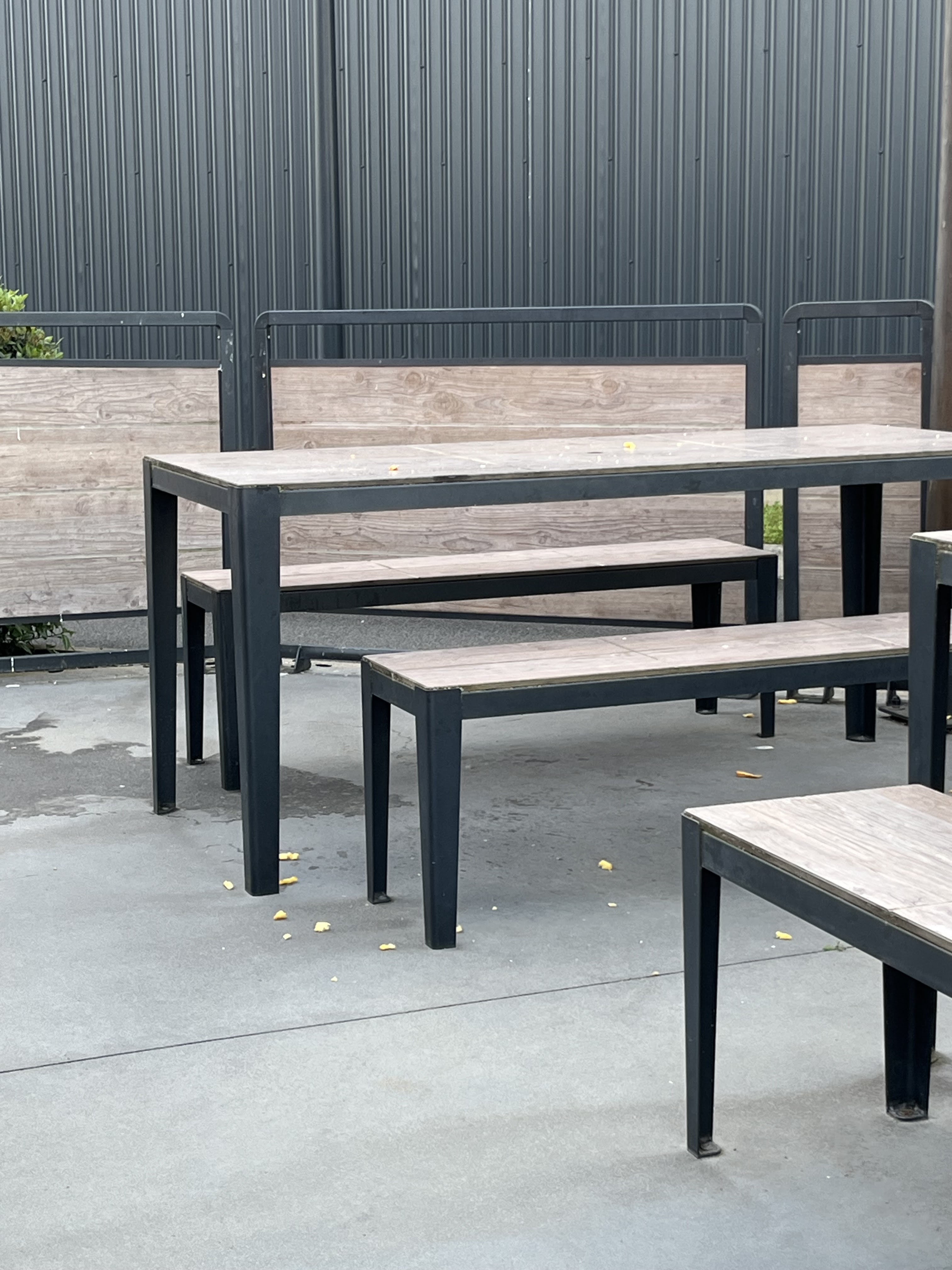 Employée qui jette une poignée de frite sur la terrasse dehors à côté de notre table pour nourrir les oiseaux.. hygiène à revoir