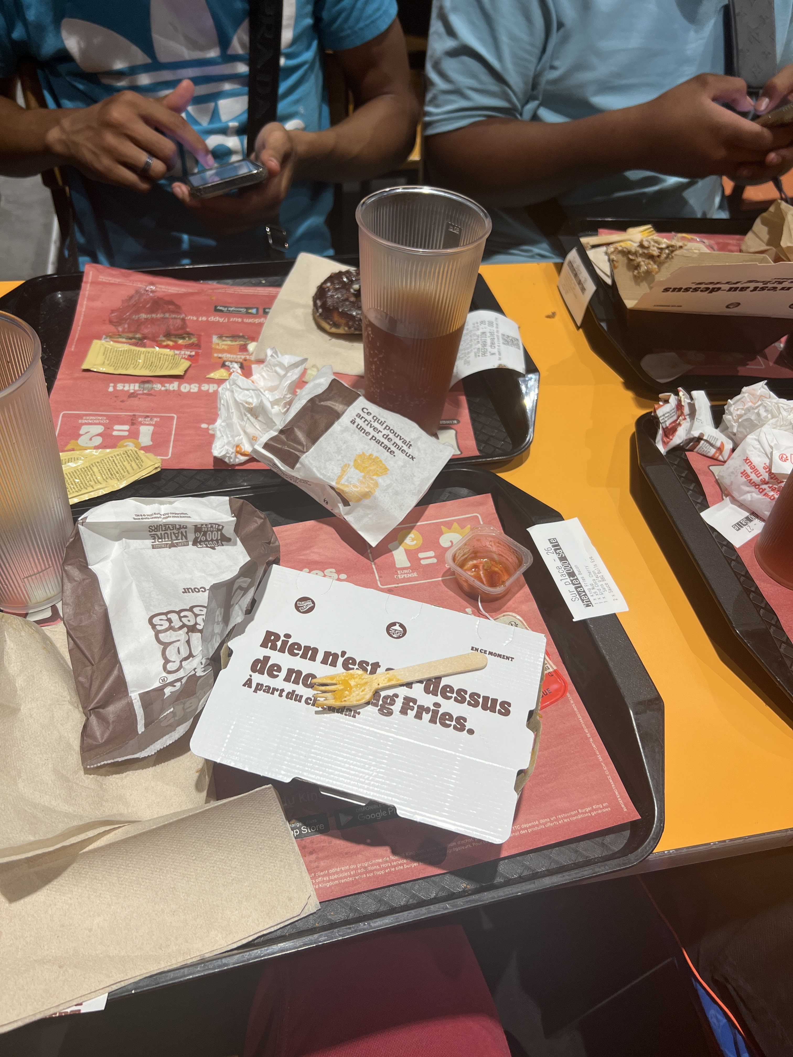 Le pain de mon burger avait un goût bizarre puis j'ai eu mal au ventre en fin de journée... je préfère pas dire mais ce n'est pas la première fois que je suis déçu. Froid n'est plus une option c'est trop souvent..