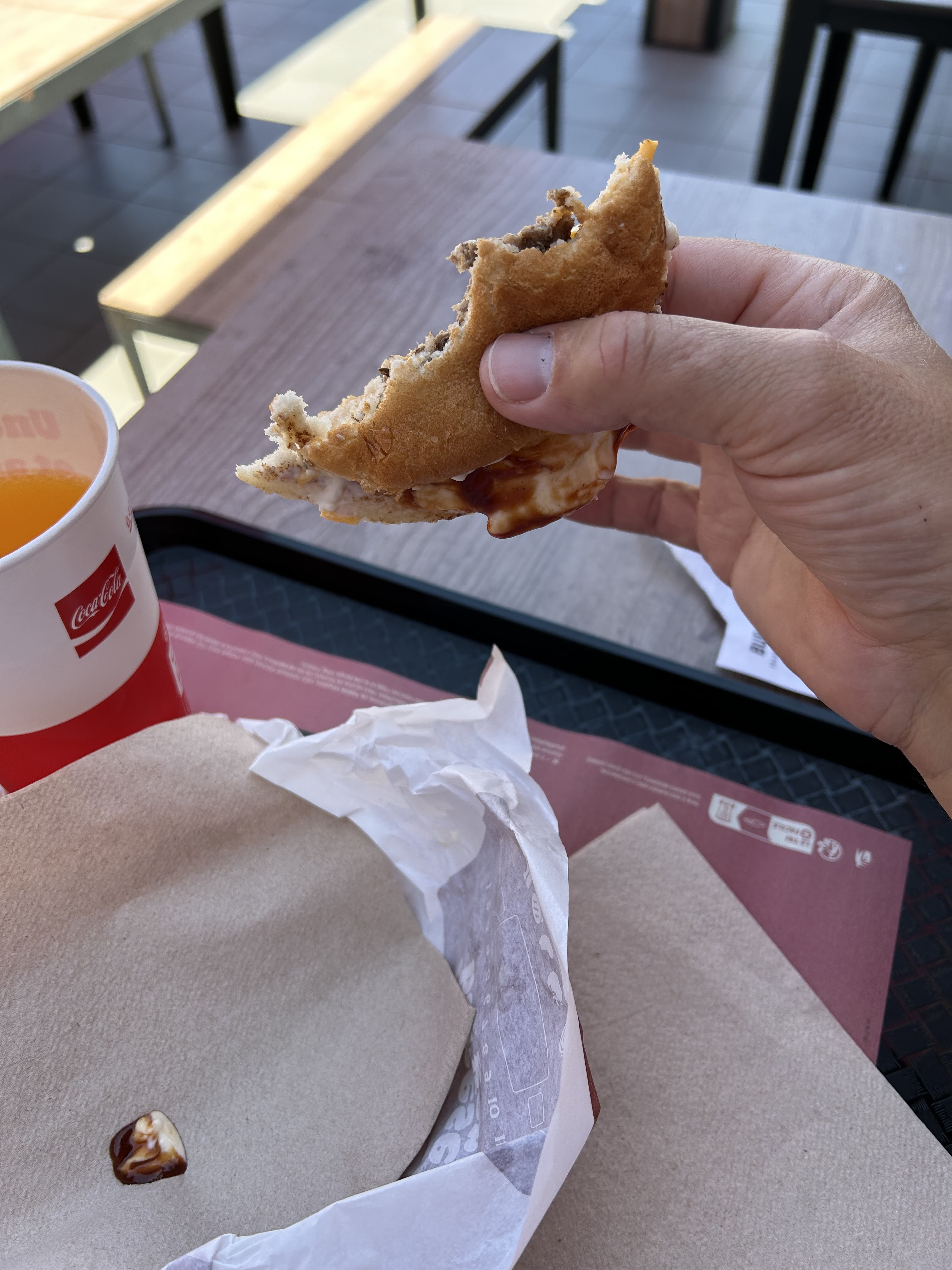 Sandwichs froids, le Fanta à une présentation et un goût plus que douteux. Les tables extérieures sont dans état lamentable. Heureusement nous n'avons eu de la chance de ne pas être servi avec la vaisselle du restaurant mais avec du jetable, chercher l'erreur quand on mange sur place. Bref, déçu de BK, avec les prix qui ne cessent d'augmenter le client pourrait être mieux servi. J'oubliai à la place de la musique vous avez les hurlements de la manager qui voudrait stimuler son équipe mais peine perdu ça démotive encore plus.