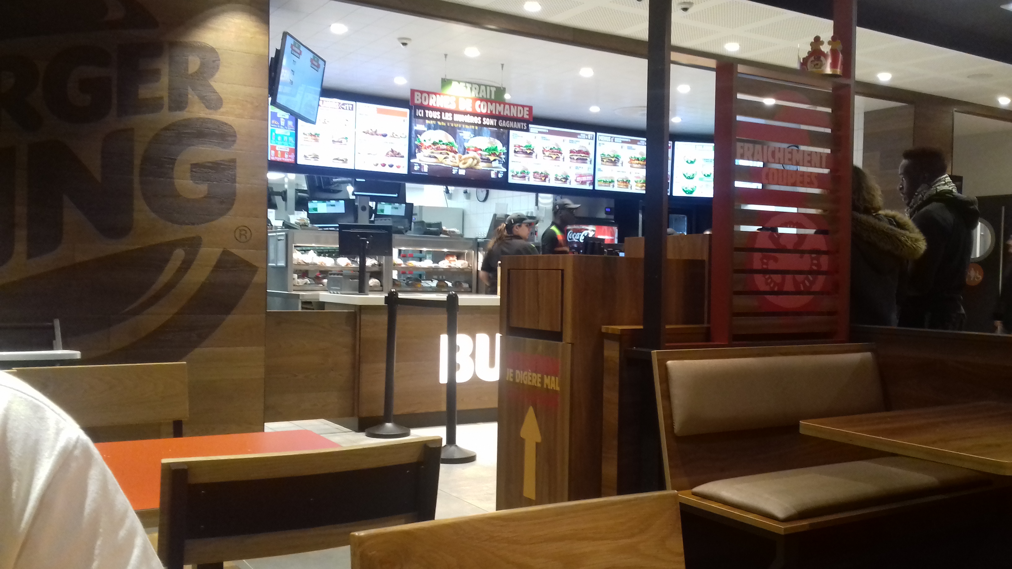 Le service n'est pas au rendez-vous, les employés sont aussi perdus que moi . L'accueil laissé vraiment à déplorer ,surtout si avez des demandes ,les employés ne sont vraiment pas aimable. Aucune prise USB que j'ai essayé ne fonctionne. La nourriture est comme dans les autres Burger king mais personnellement je trouve que les portions sont moins fournies.