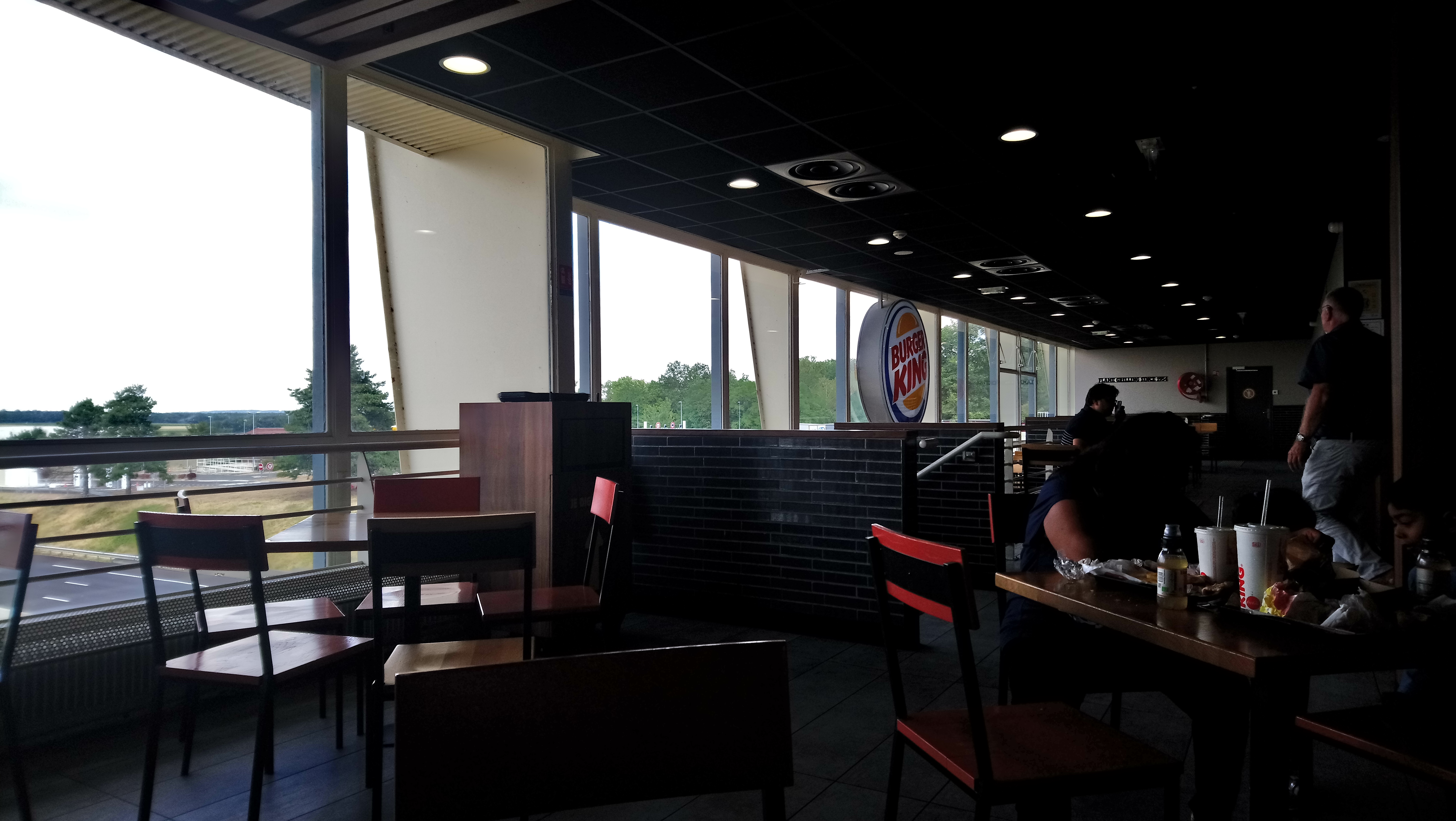 Rapide. Des place à table dans le passage au dessus de l’autoroute, la vue sur le passage des voitures y est surprenant. Qualité et choix Burger King garanti.