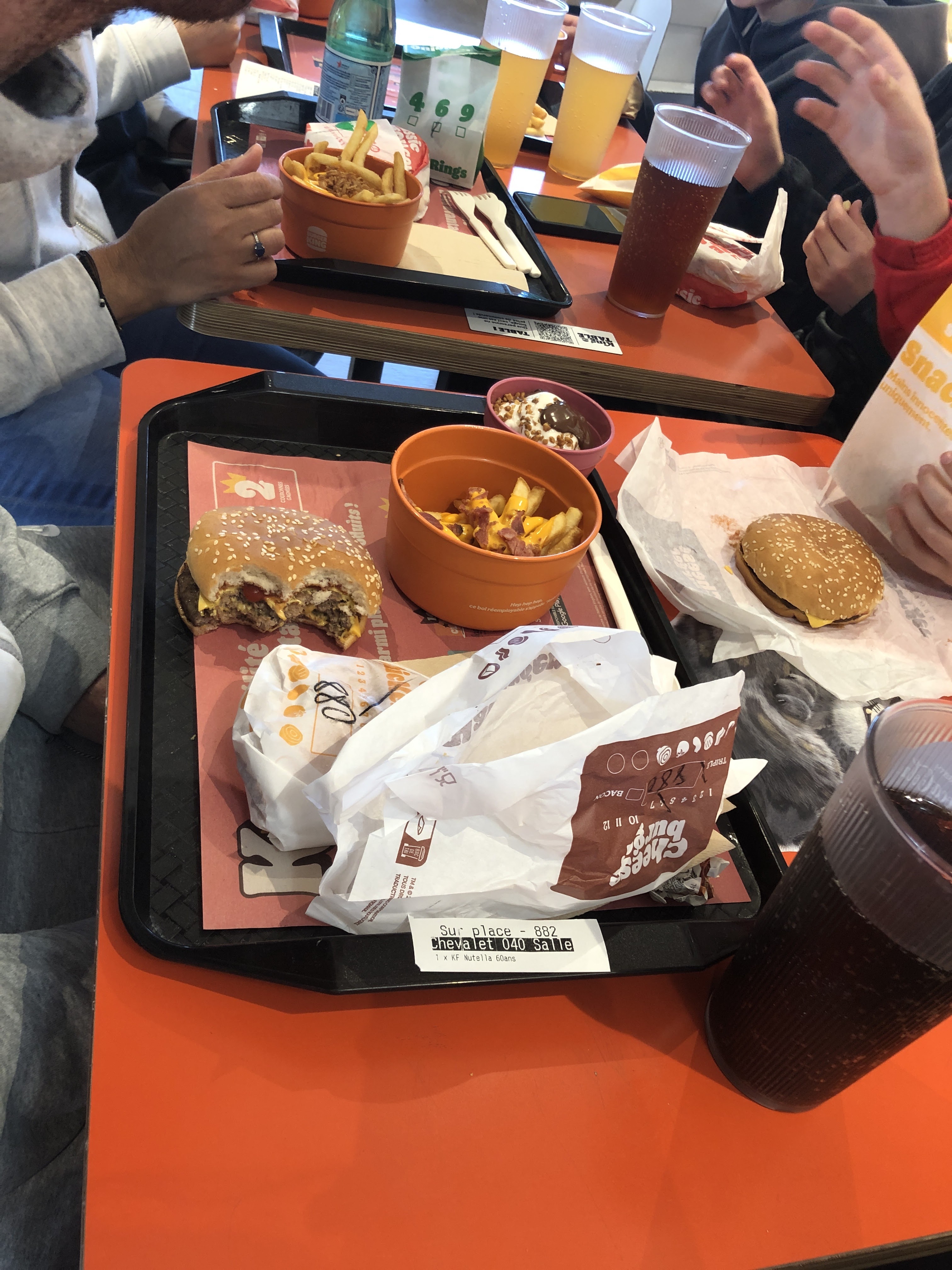 Accueil seigneurial! Un burger digne de ce nom. Si vous voulez allez la salle de musculation vamos chez Burger King. Mention spéciale pour Wissam qui nous à régalé👌