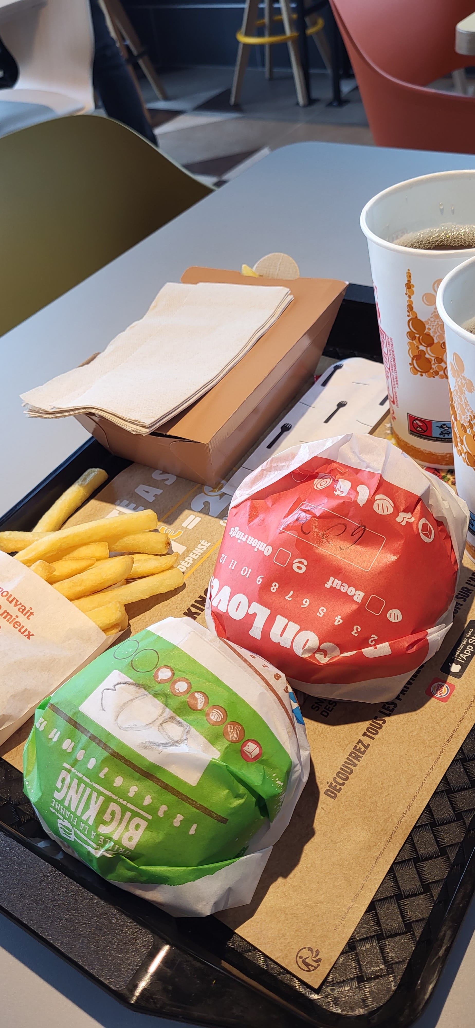 Au taquet Mélanie, service rapide, rien à dire de BK, comme d’hab ! Le plateau est vide, le bide est plein 🤪 « Hams »