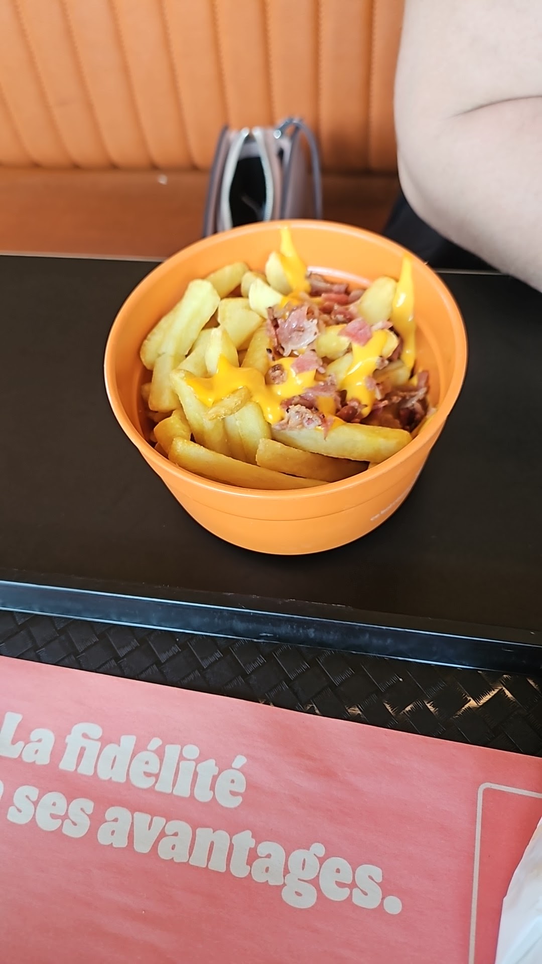Franchement très déçu !!! Le peu de frites avec supplément cheddar...on se demande où est le cheddar pour 1,50€ Pour une famille de cinq 45 euros..... Et le hamburger je vous laisse juger. Enfin très déçu.
