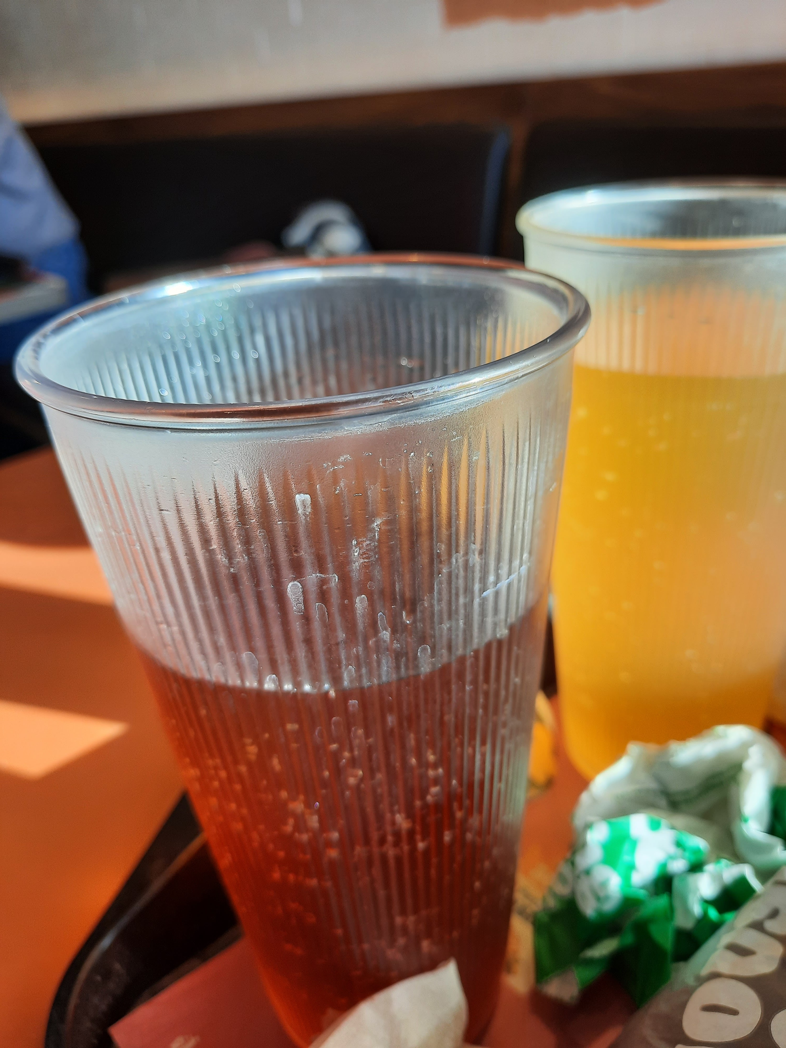 Ne respecte pas la règle des gobelets réutilisables ... les tables sont sales et le Burger était froid ...