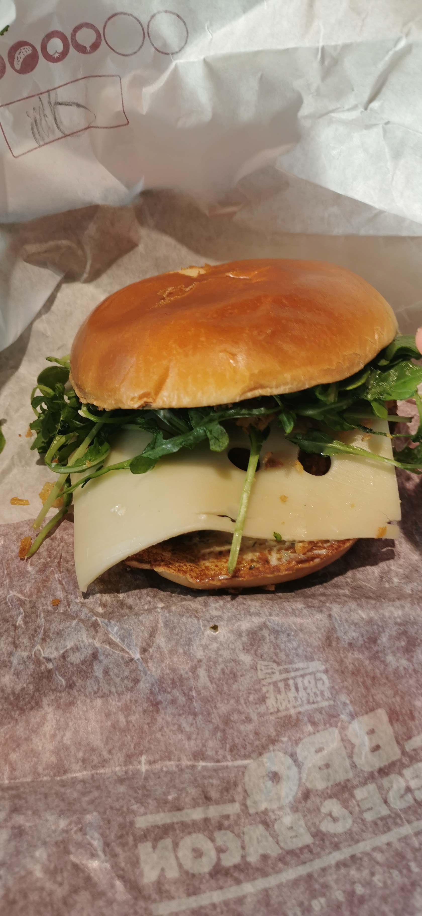 Un fast food quoi , produits surgelés ou sous vide ,c est pour ça qu'on y va .. Juste supporter une musique survendue par des maisons de disques , quand je vois les trois quarts de la clientèle étant cinquantenaire et qu on doit s écouter du son plus que limité à tous niveaux. Apres je préfère BK aux autres enseignes, je prendrai bien à emporter pour m éviter la musique mais ça refroidi et se plastifie plus vite qu on est servi