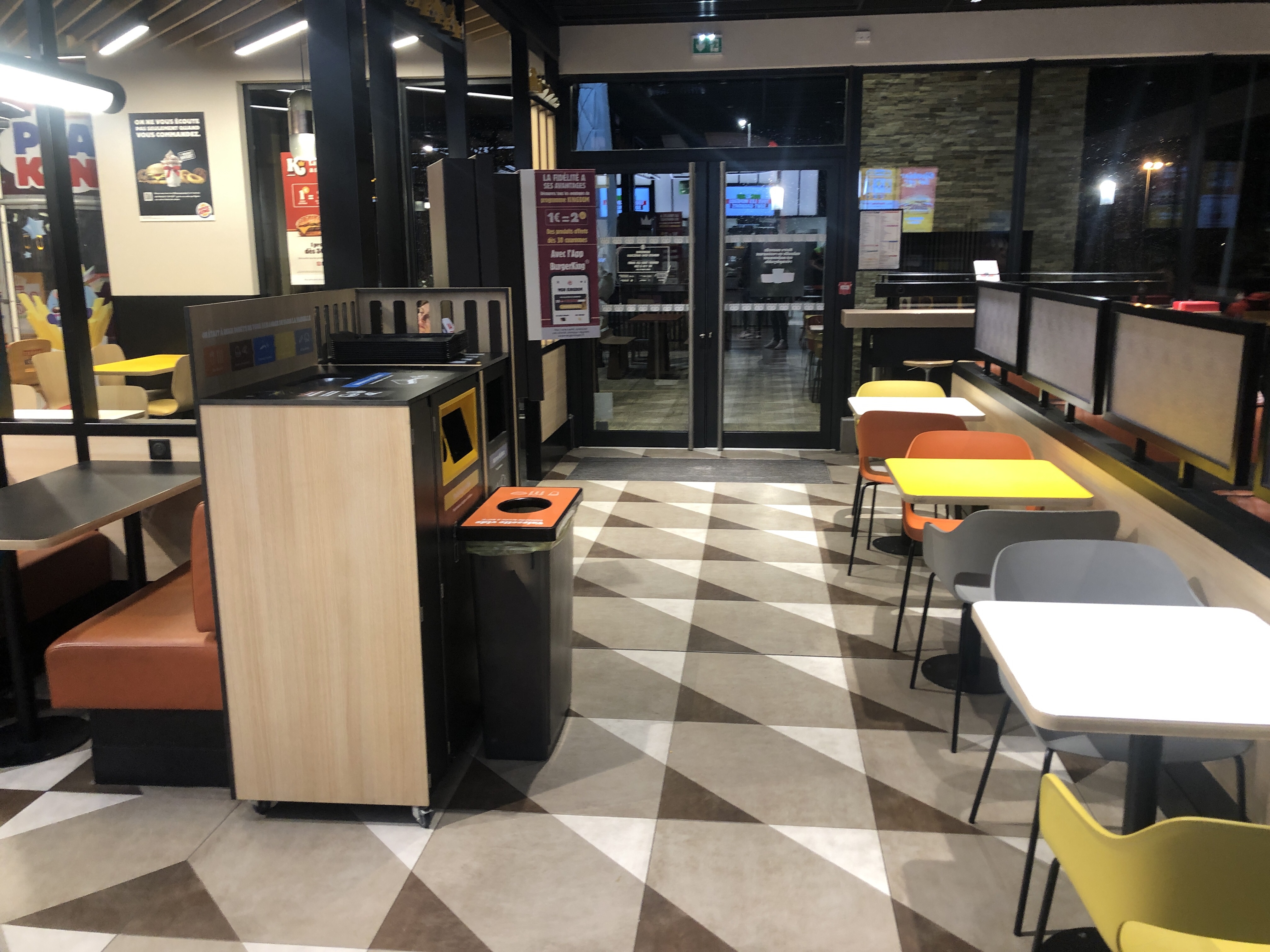 Lieu de restauration rapide qui fait le job. Les enfants ont apprécié le repas, le petit puzzle en cadeau et l'aire de jeu (petite mais pas bondée donc ça va). Service à table assez rapide mais lorsqu'il faut aller réclamer un article ou demander un service...on ne sait à qui s'adresser...l'équipe semble sous l'eau derrière le comptoir...personne ne vient à notre rencontre et on a l'impression de faire forcing en s'adressant au premier venu, donc de déranger... La musique dans les toilettes est assourdissante, est-ce pour camoufler les bruits déplaisants 🤷🏼♀️😂 Le rayon débarrasage est compliqué à décrypter et pas logique dans sa disposition (le bac vaisselle réutilisable (donc verres, couverts, pots de glace, etc) est avant la poubelle de déchets alimentaires et l'évier pour les liquides...pas très pratique du coup !