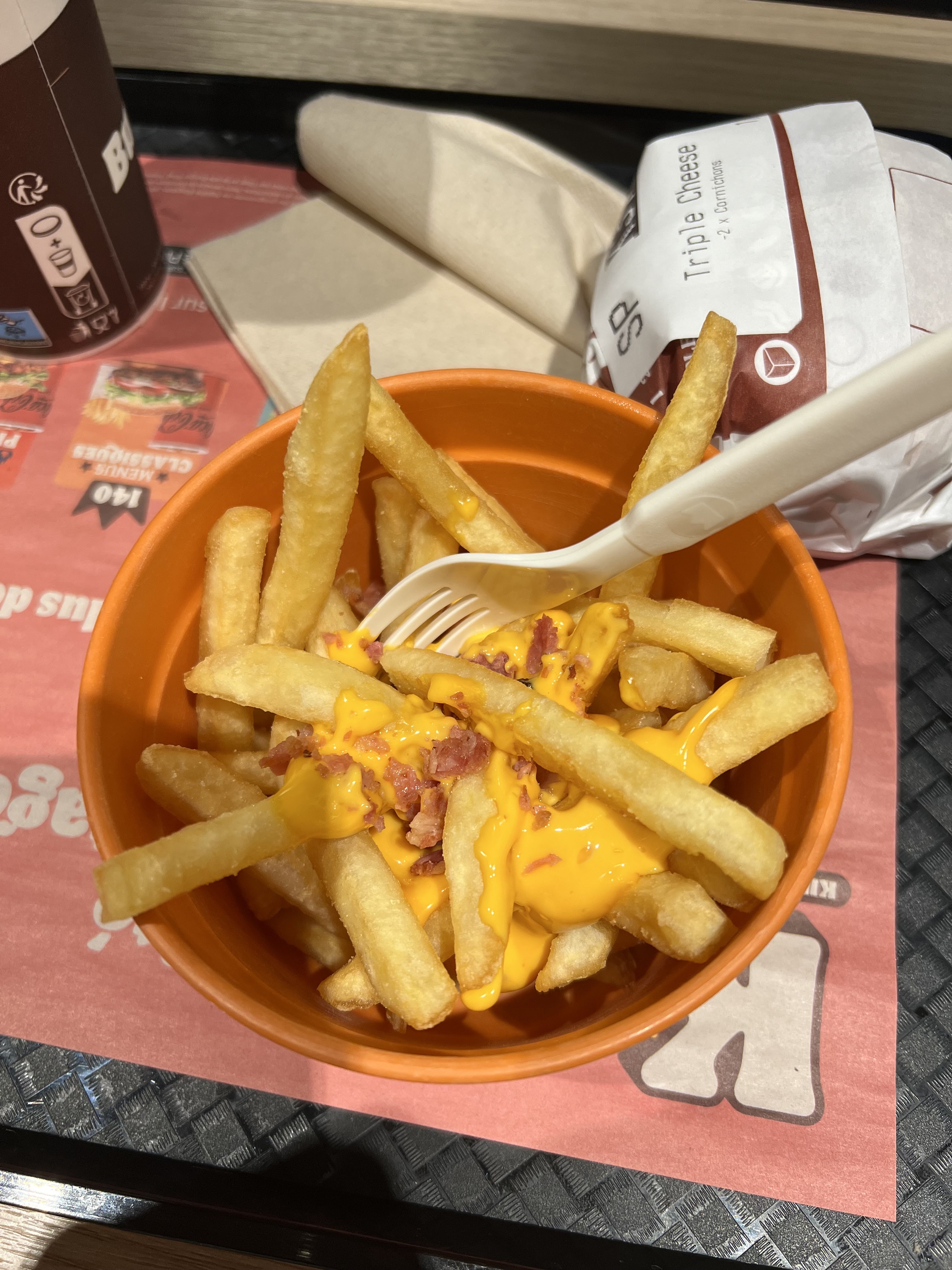 Les king fries on une quantité de bacon et de cheddars minime, cela n’est pas la première fois. Inadmissible au vu du prix du supplément !