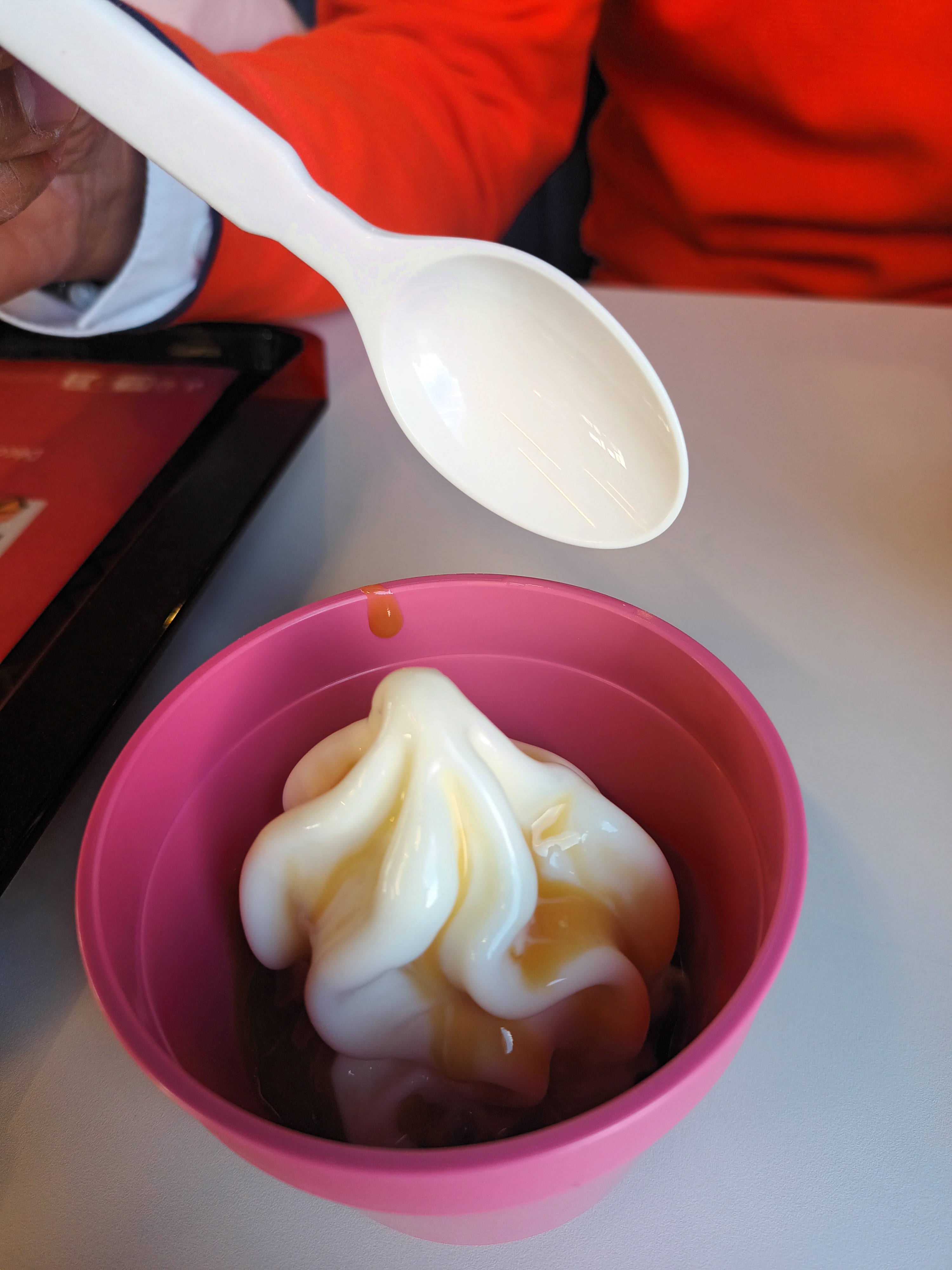 Je commandes des glaces sur place mais je ne sais pas avec quoi la manger pas de cuillère ? Sommes nous des animaux ? De plus la personne chargé d’amener les commandes souffle quand je demande d’avoir une cuillère du fait de ne pas en avoir eu mais bon je pense faut revoir votre service à table bien mieux chez McDo plutôt que des robot