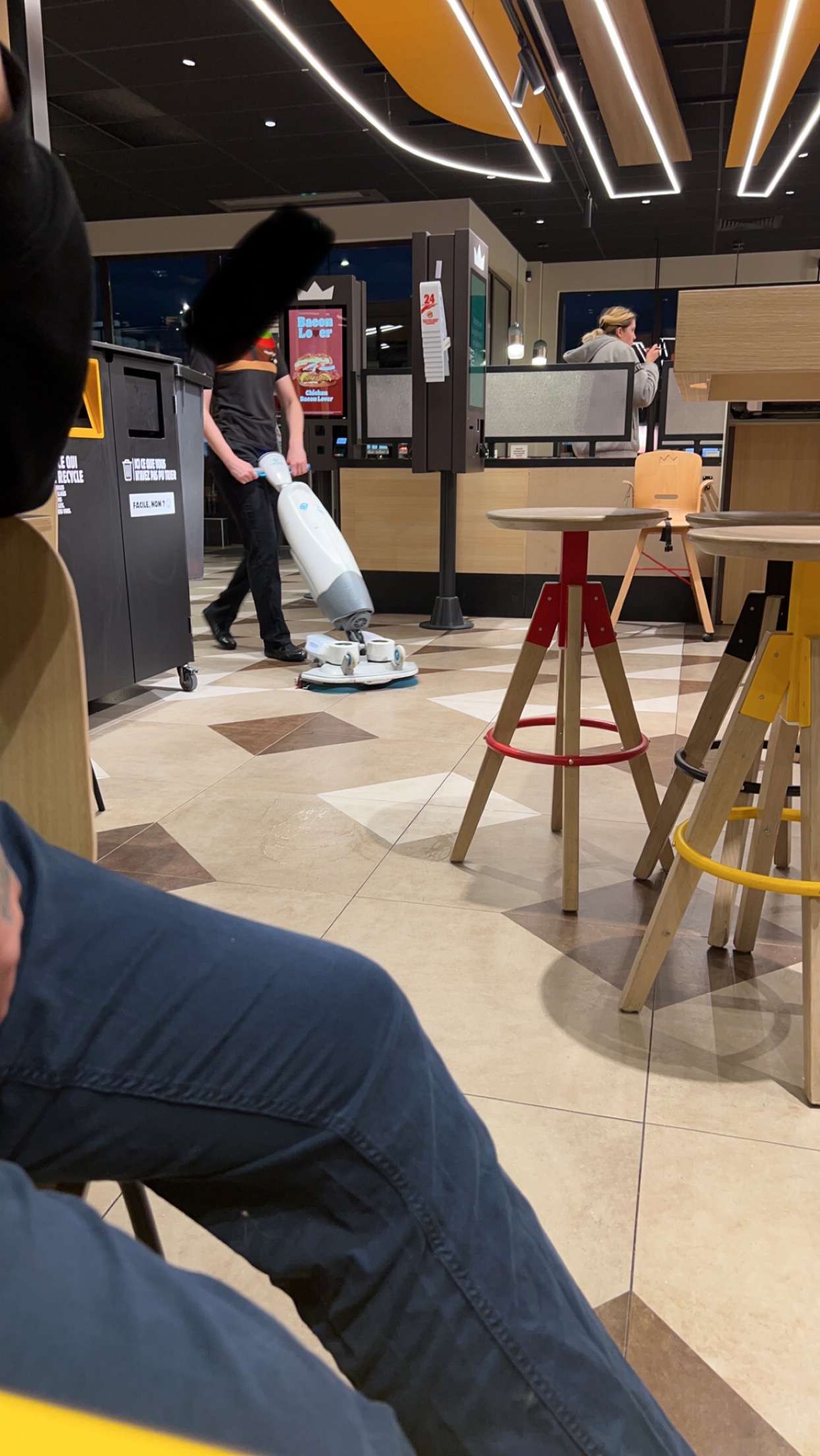 Je suis venue manger ce dimanche vers 21h Déjà il a fallu attendre 15/20 min les menu alors que derrière le comptoir ça discute et ça fait dès briefing en plein services ! De plus c’est inadmissible de manger sur place et pendant le repas une employé passer la machine à laver juste à nos pied pendant qu’on mange ! Le restau ferme à 00h voir 1h et à 22h ça commence déjà à laver pendant que les clients mangent !! Et de plus c’est tout mouiller mes enfant aurais glisser je n’aurais pas laisser passer ! Et en plus le cuisinier qui sors normal comme ci de rien n’étais de la cuisine BK avec une cigarette à la bouche devant les clients ! Payer 35€ pour ça j’en ai mal au C** !! Franchement j’ai jamais vu ca ! Je recommande pas du tout . Certaines choses à revoir pour un nouveau Burger King ! Je reviendrais pas . Je préfère allez chez la concurrence !