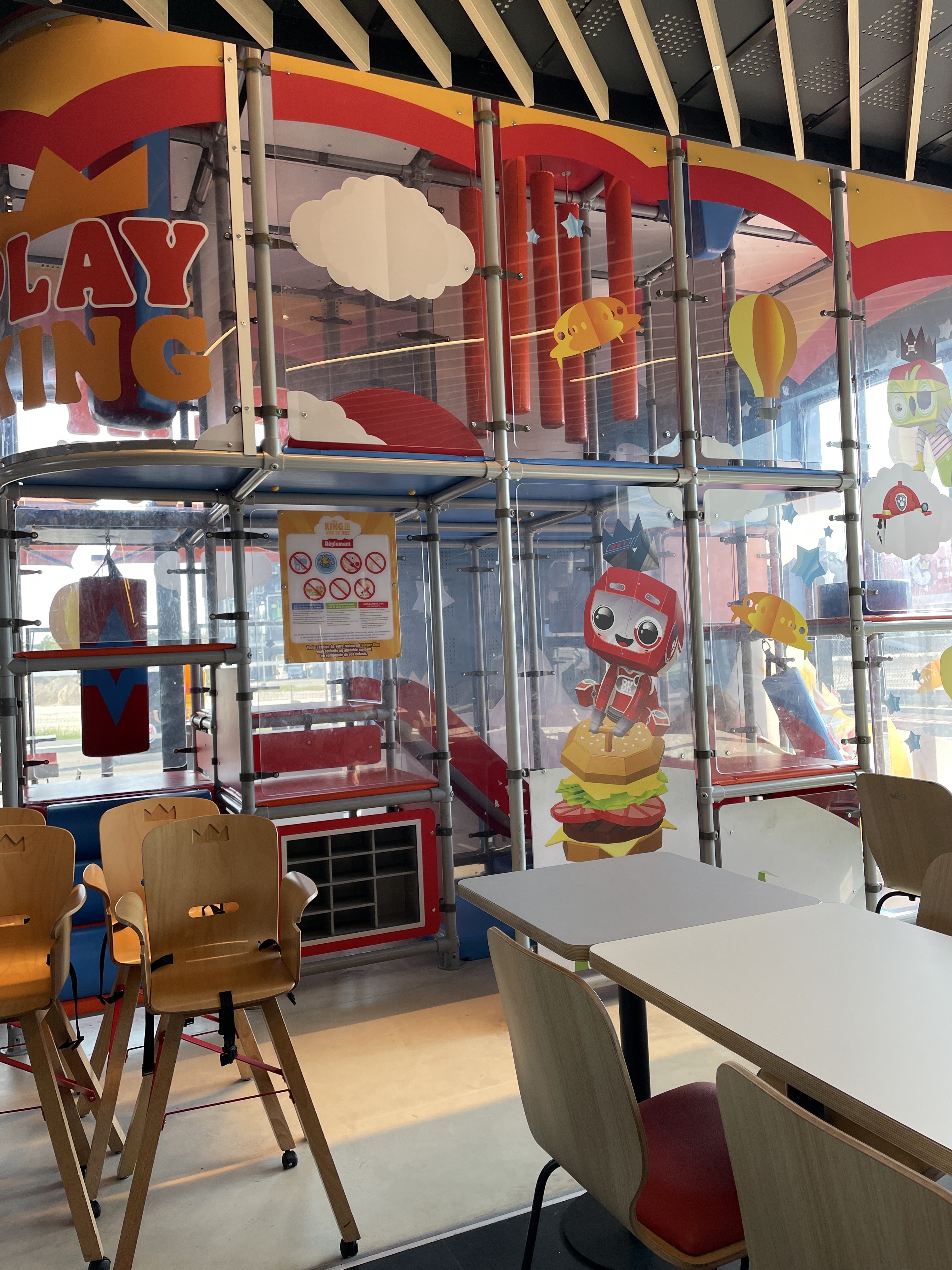 Restaurant bien situé, assez grand, propre et confortable avec les banquettes. Il est juste très dommage que les toilettes soient trop régulièrement dans un drôle d'état après le passage de clients qui ne font pas attention à maintenir le lieu propre malgré l'attention portée par les employés 😔 Repas sympas et variés. Aire de jeu assez grande. La climatisation est agréable en été. Les couronnes à chaque table sont rigolotes pour les enfants 🤗 Les employés sont très avenants, on a eu le plaisir d'échanger avec Morgane qui est super à l'écoute et sympa, elle a à cœur son travail 🥰
