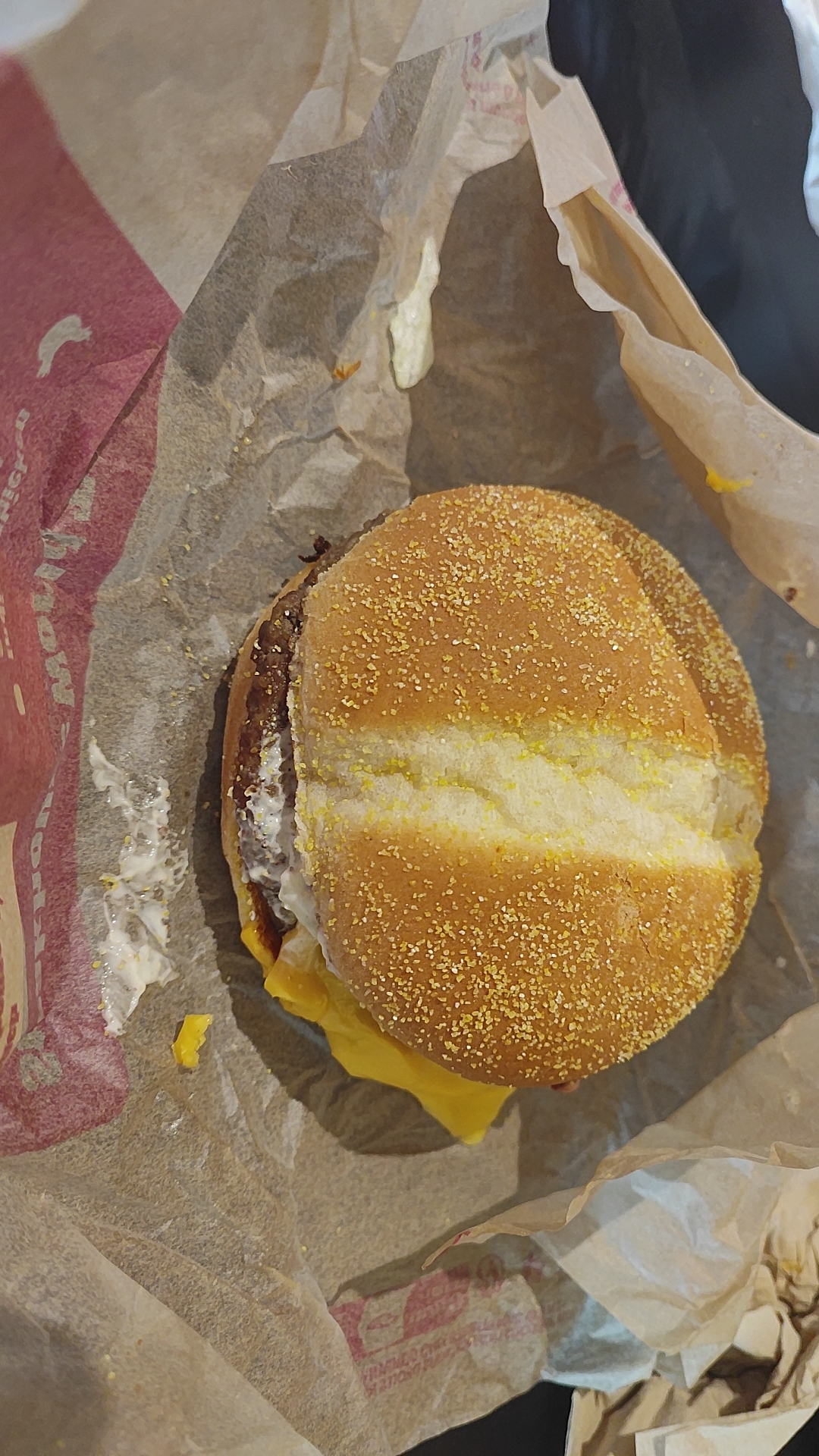 Burger très sec, avec le fromage même pas chaud ni coulant. Accompagnement du menu oublié (mais bel et bien payé !), ticket de caisse à réclamer car n'est délivré sur aucun des bornes. Le seul bon point était le coca cherry, c'est dire !