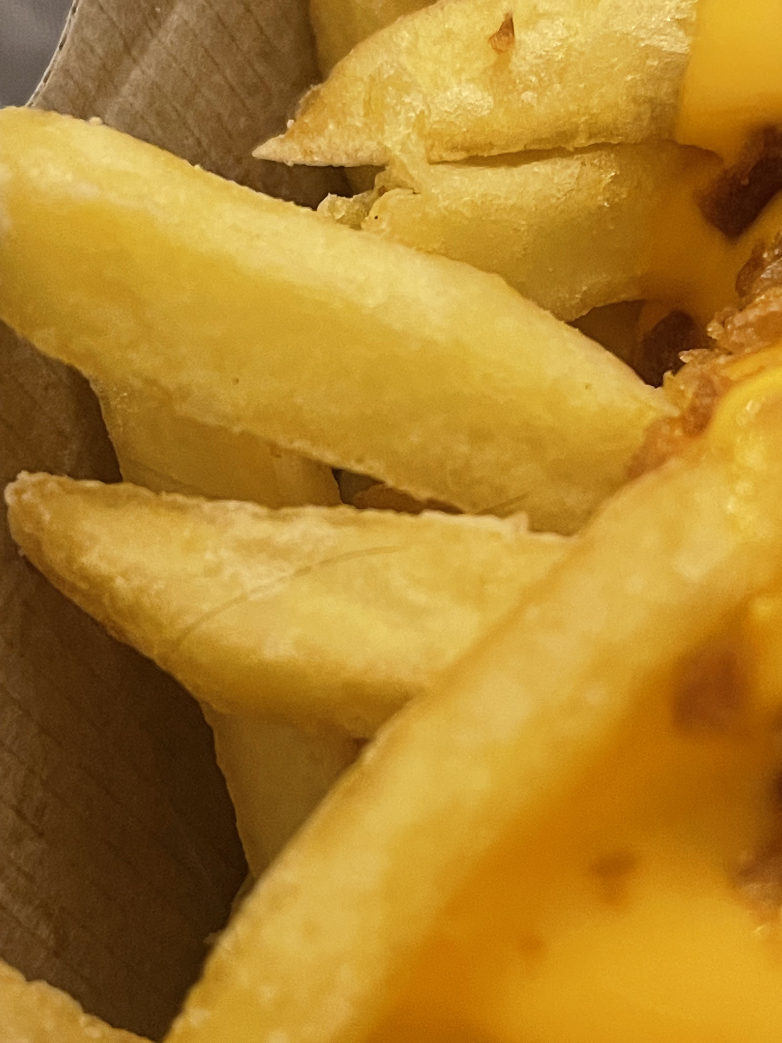 Manque de personnel et d'organisation evident qui crée un retard dans la préparation en heure de pointe et des erreurs de commande. Nous avons été servi avec 25 min d'attente pour une commande à emporter et il manquait une frite cheddar bacon. La préparation en cuisine peinait à sortir et les préparateurs devaient attendre derrière pour pouvoir envoyer, ce qui amène à des erreurs ou des oublis. J'espère que vous trouverez de quoi renforcer vos effectifs et remanier l'organisation.