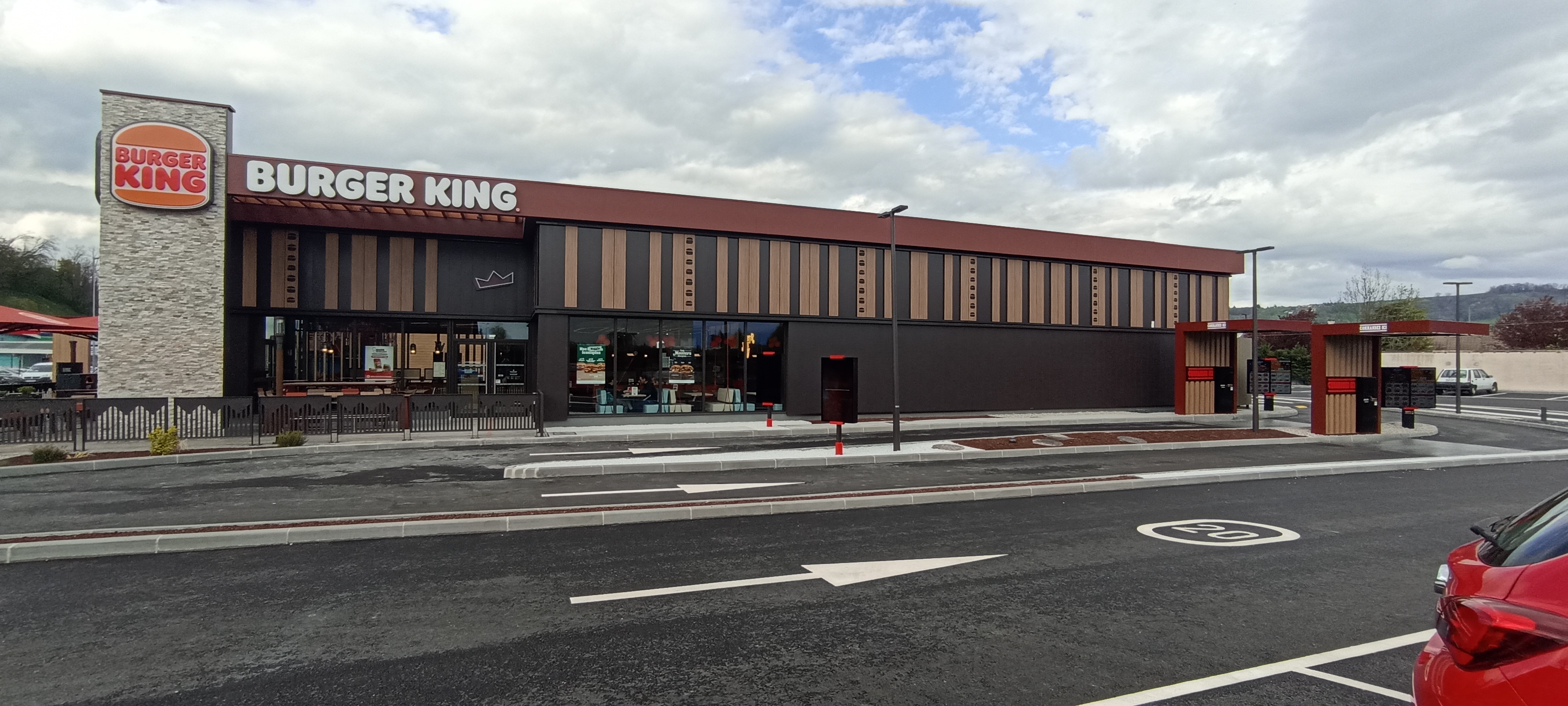Étant ouvert récemment, le bâtiment est magnifique et bien agencé. Visible car il est au bord de la route, petite terrasse, grand parking. Les menus de cette enseigne sont très bons...
