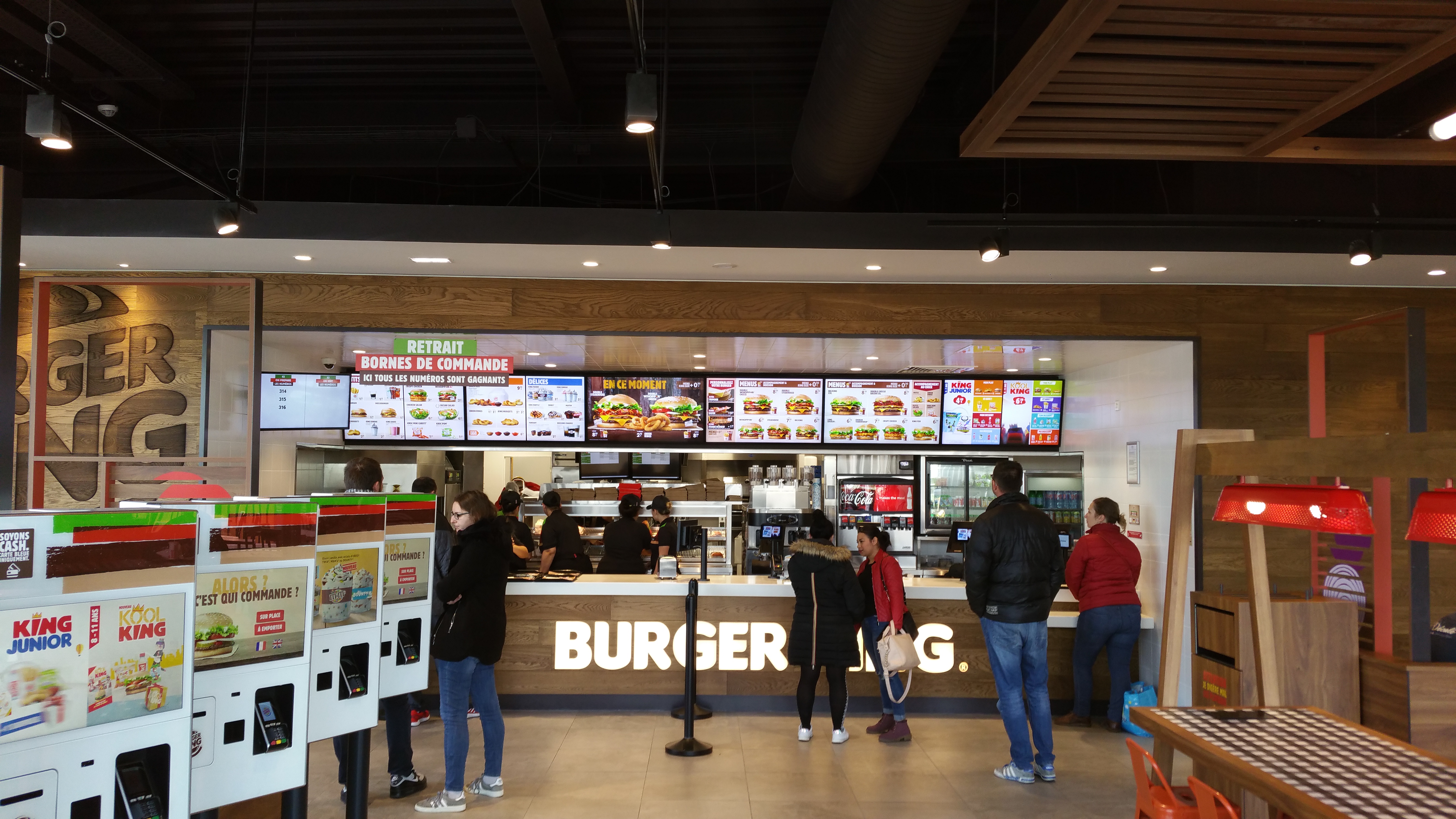 propre , clientèle relax comparée a d autre Burger king. Nous avons été servi a peine assis. ce restaurant détient donc notre record en terme de rapidité de service. être meilleur que ça impliquerait de connaître notre choix avant nous ... qui sait peut être ça arrivera un jour. Nous avions un problème pour régler sur la borne , il a été résolu avec le sourire pas le personnel. Merci aux employés de ce fast food , de m avoir réconcilier avec les fasts foods.