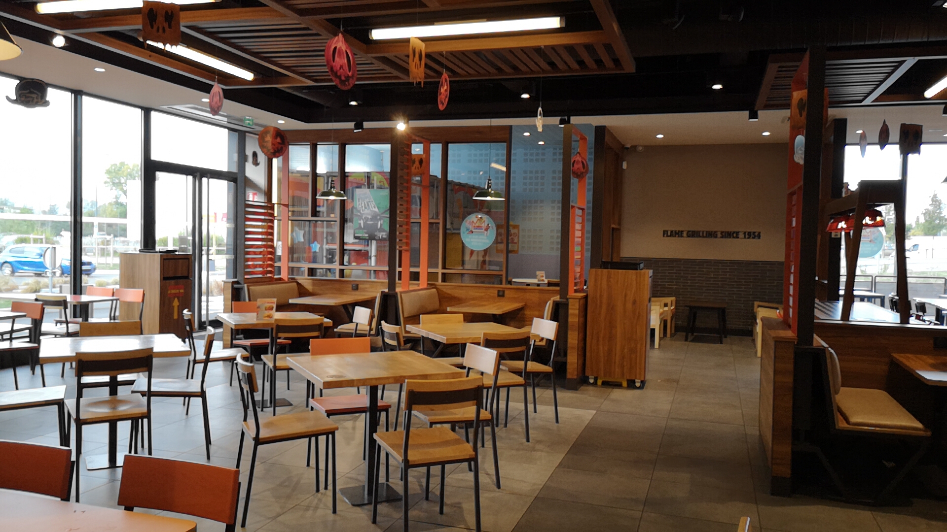 Un burger king classique, on a commandé aux bornes et nous avons reçu toute la commande. Il y a une petite terrasse pour manger. J'ai découvert le système de bornes/chevalet ( on nous apporte la commande directement à notre table. Ça c'était top !