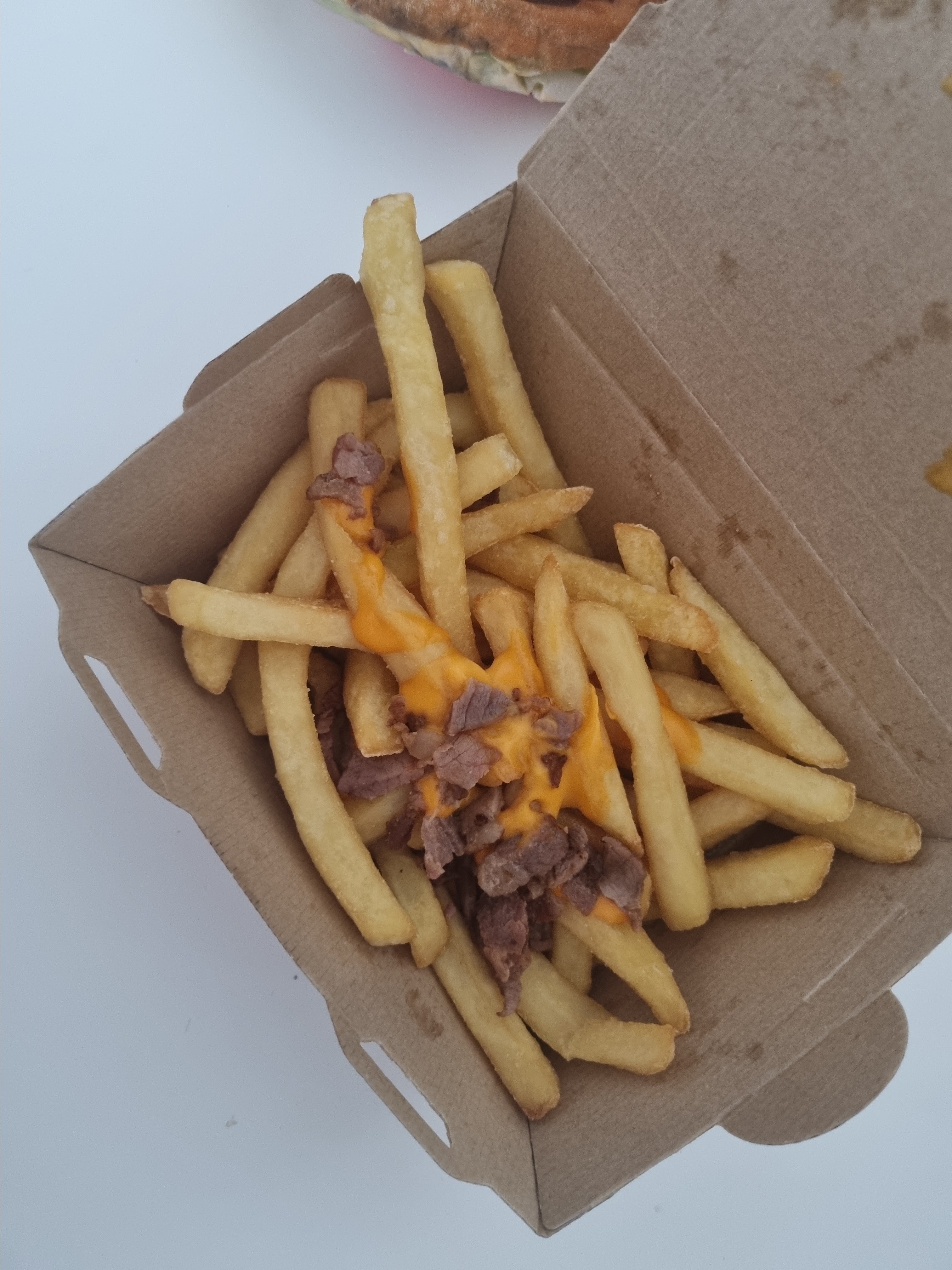 Beaucoup d’attente, la personne vers qui on s’est tourné pour savoir où en était la commande ( car non marqué sur l’écran) pas aimable, nous a dit être débordé, d’attendre notre tour… lors du service a table nous avons reçu les frites sur notre tête, et le wrap était froid…loin d’être le top.des bout de pouls trouvé dans les frites avec sauce cheddar