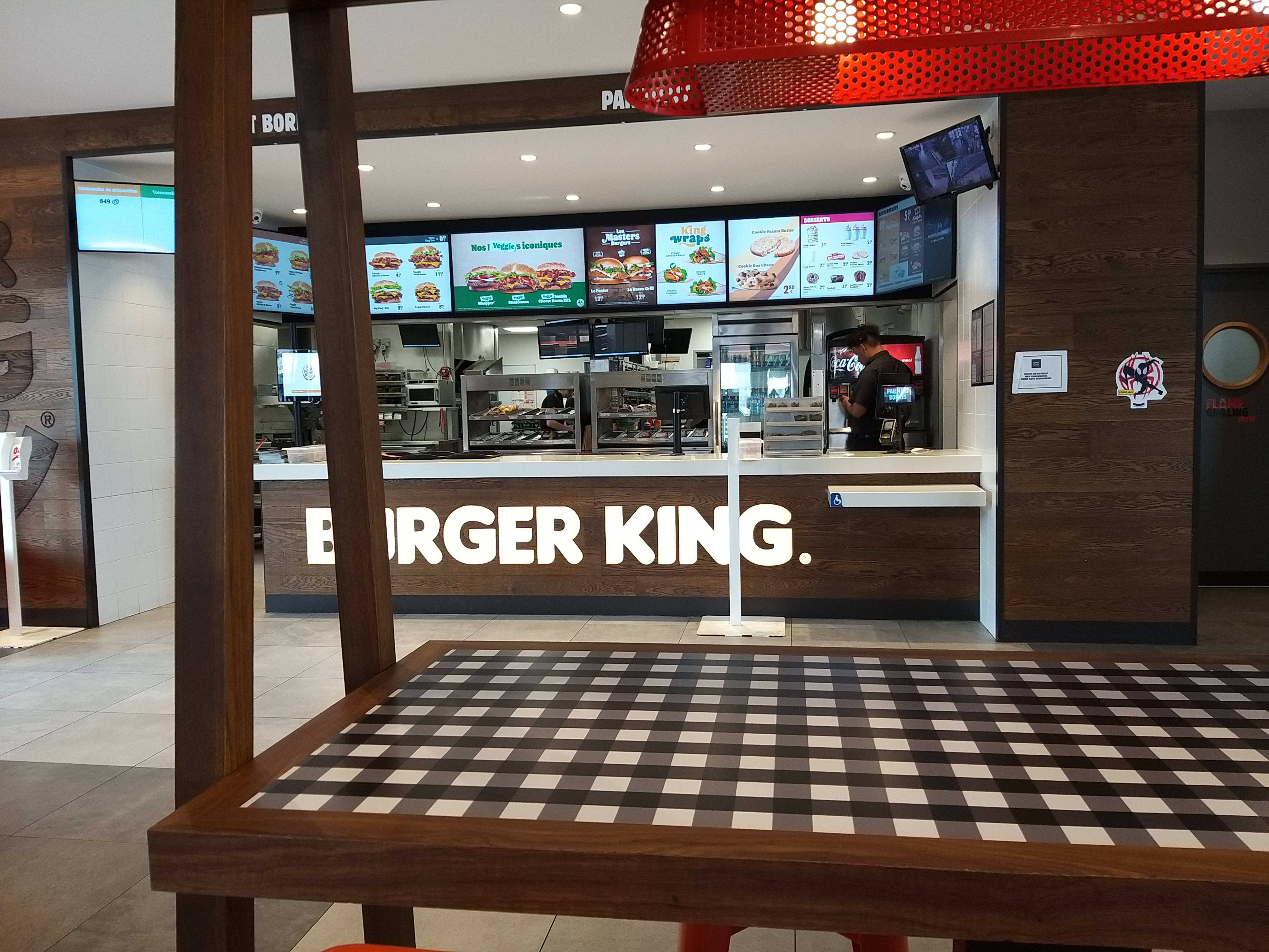 samedi vers 11h10 nous avons ete dans le burgger king et pour la premiere fois tres deçus tablespas tres propres alors que le service commence le gars au comptoi qui se gratte la tete en meme temps qui sert les buggerts et les frites faudrai pas que cela se repete sinon on changera de restaurant rapide aussi la salade cesar fade sans rien dautre que quelques petits morceaux de fromage et de la sauce cest dommage
