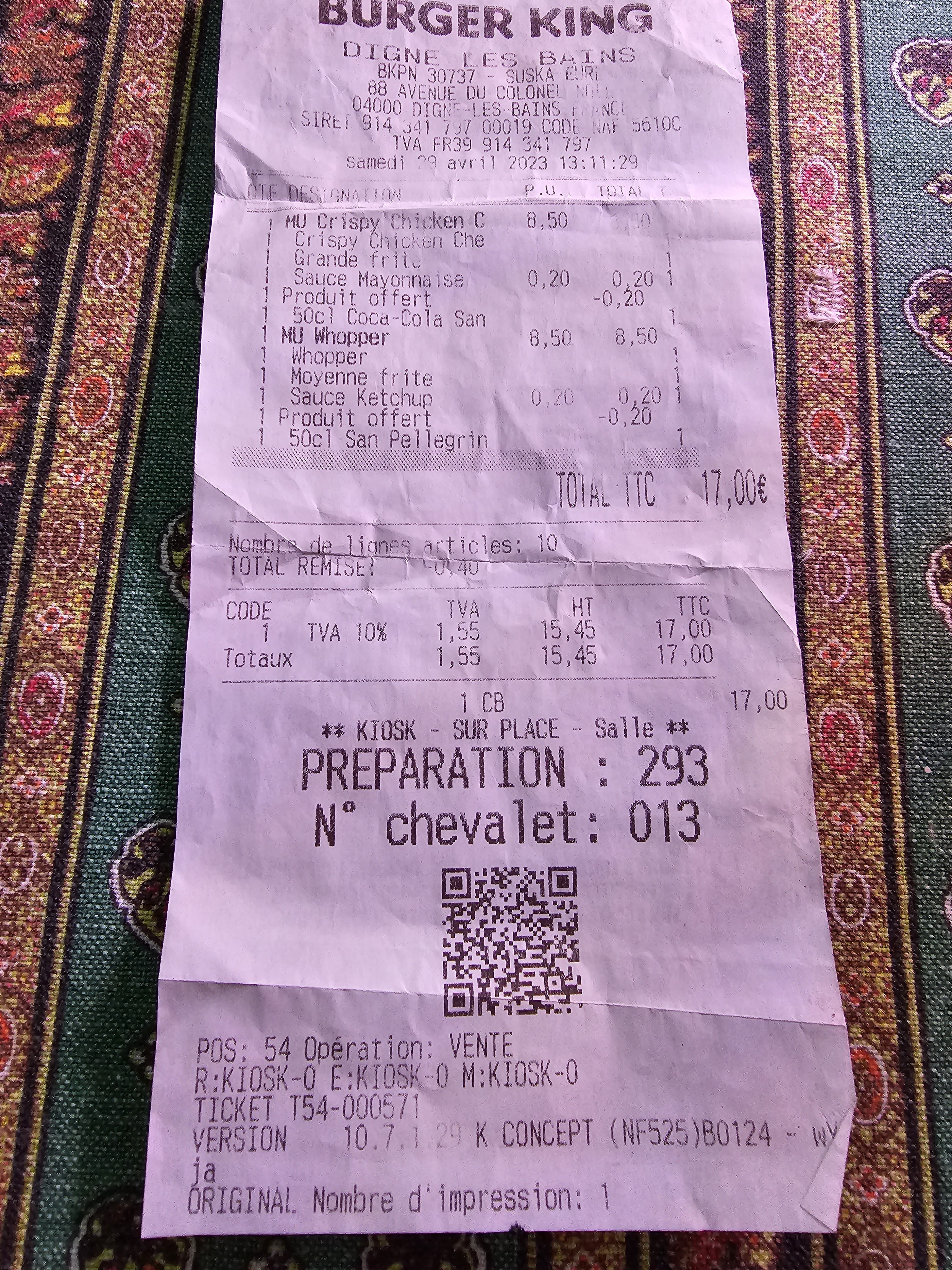 Bonjour je suis passé aujourd'hui a 12h30( j'ai comendai) a 12h50 servi plus tôt rapide pour cette fois commende incomplète a chaque fois que je vient il manquer toujours soit un boisson sois les fourchette est coûto fin il manque toujours qu'elle que chausse. Je vient a peut près 4 foie pas semaine est j'en n'est marre. Les borne qui marche pas obligé de recommencer la commende est puis l'attente au contoire pour payer Bon je pourrais continuer longtemps Cordialement Mr Je ne recommande pas beaux qu'où Mais aussi non très beaux burgers king très confortable embuence famille
